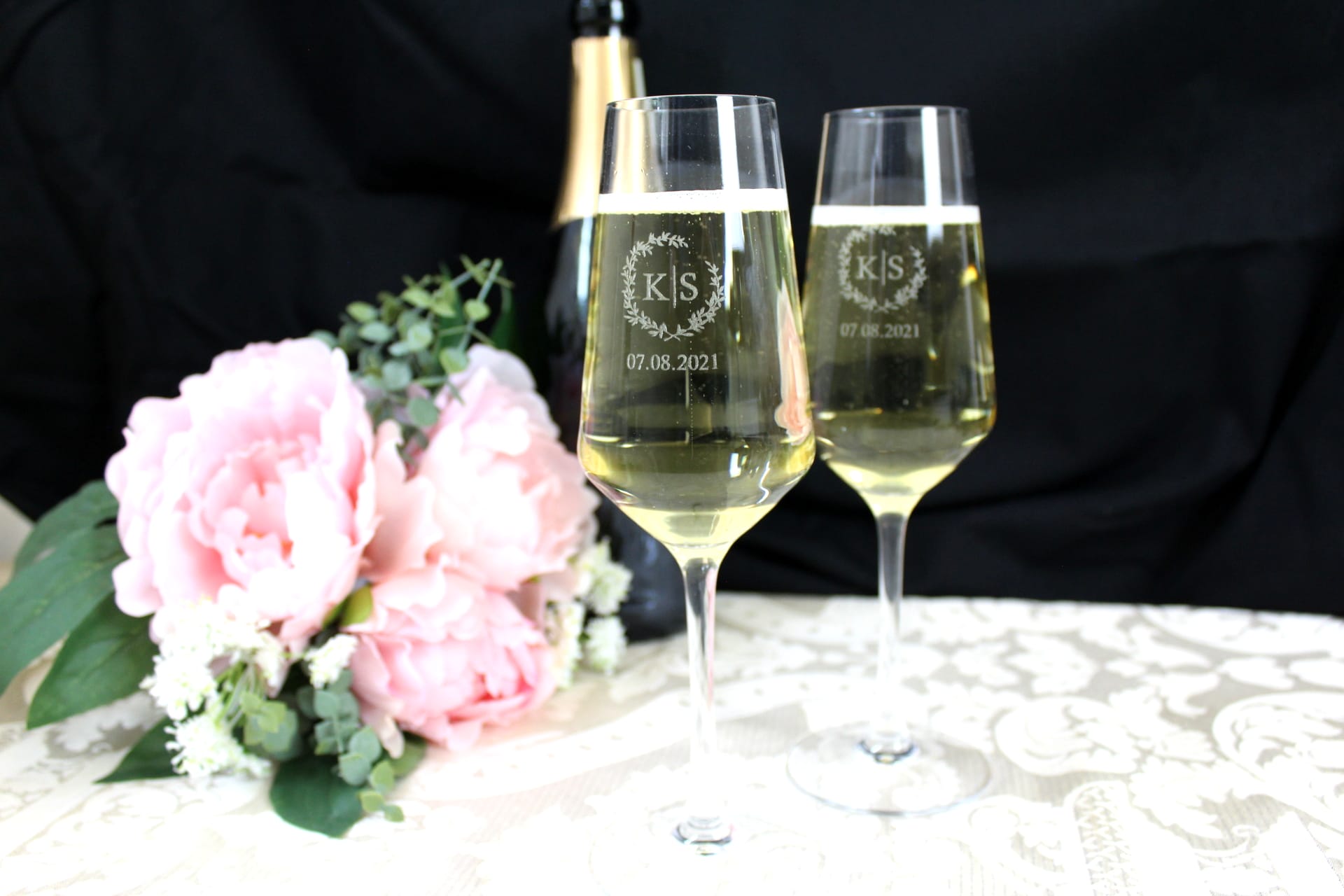 2stk Champagneglas – Krans med initialer