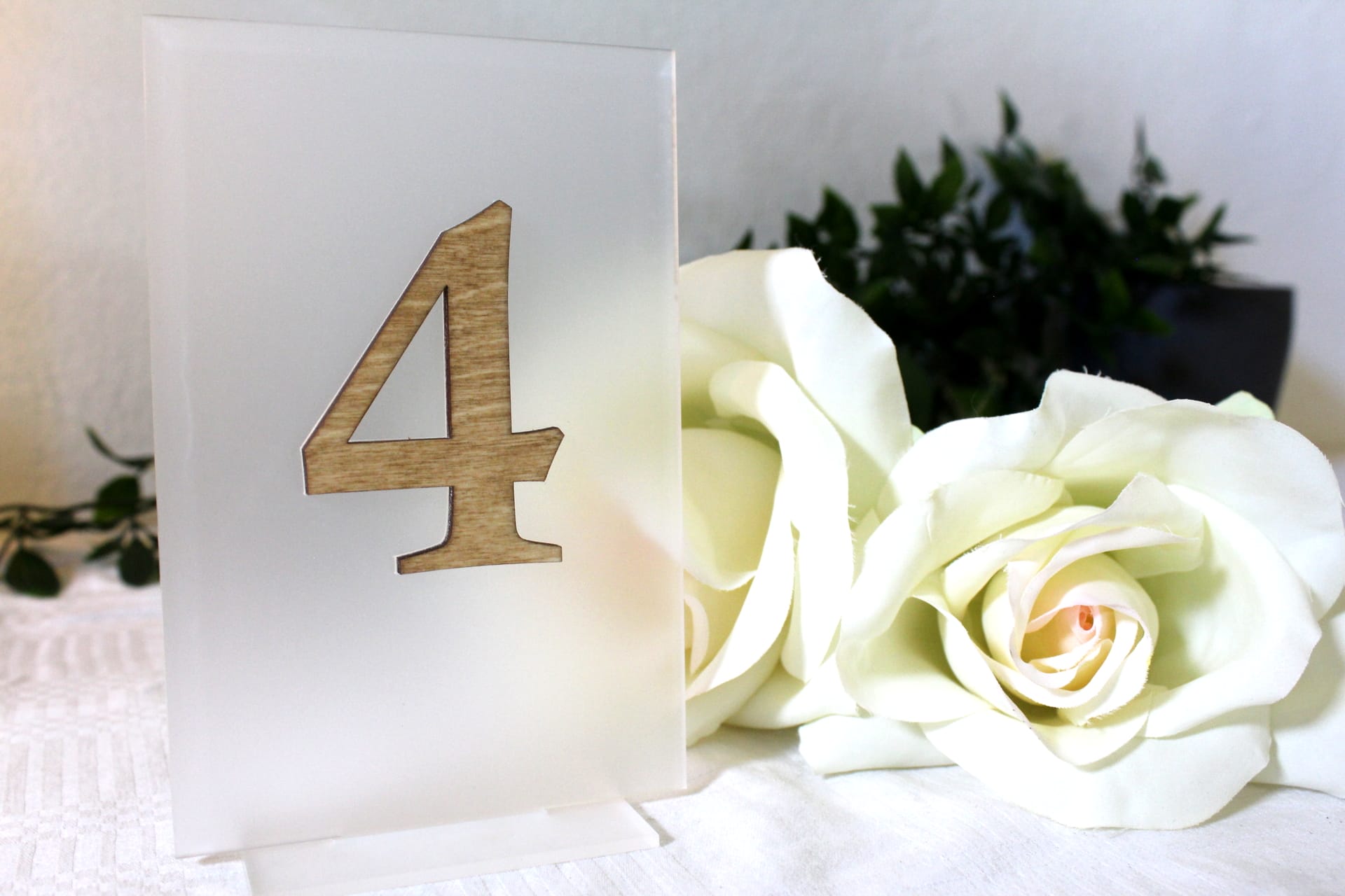 Bordkortet består af en ‘frosted’ akrylplade, som har et udskåret tal i valgfri farve på begge sider, der giver det en flot 3D-effekt.
