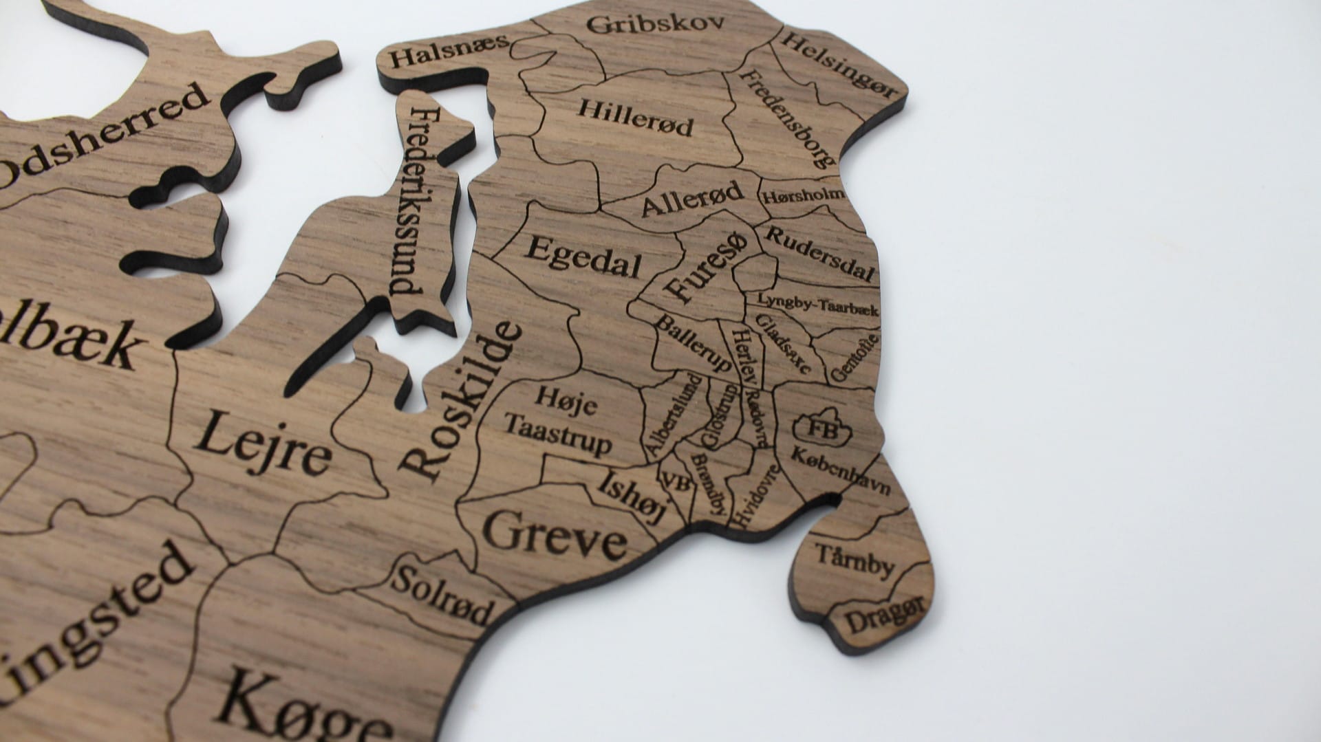 Som de fleste danskere elsker vi også Danmark. Vi har derfor valgt at fremstille vores elskede land i flotte træsorter som eg og valnød. Få Danmark helt ind i dit hjem med Skovgaardens smukke danmarkskort i træ.