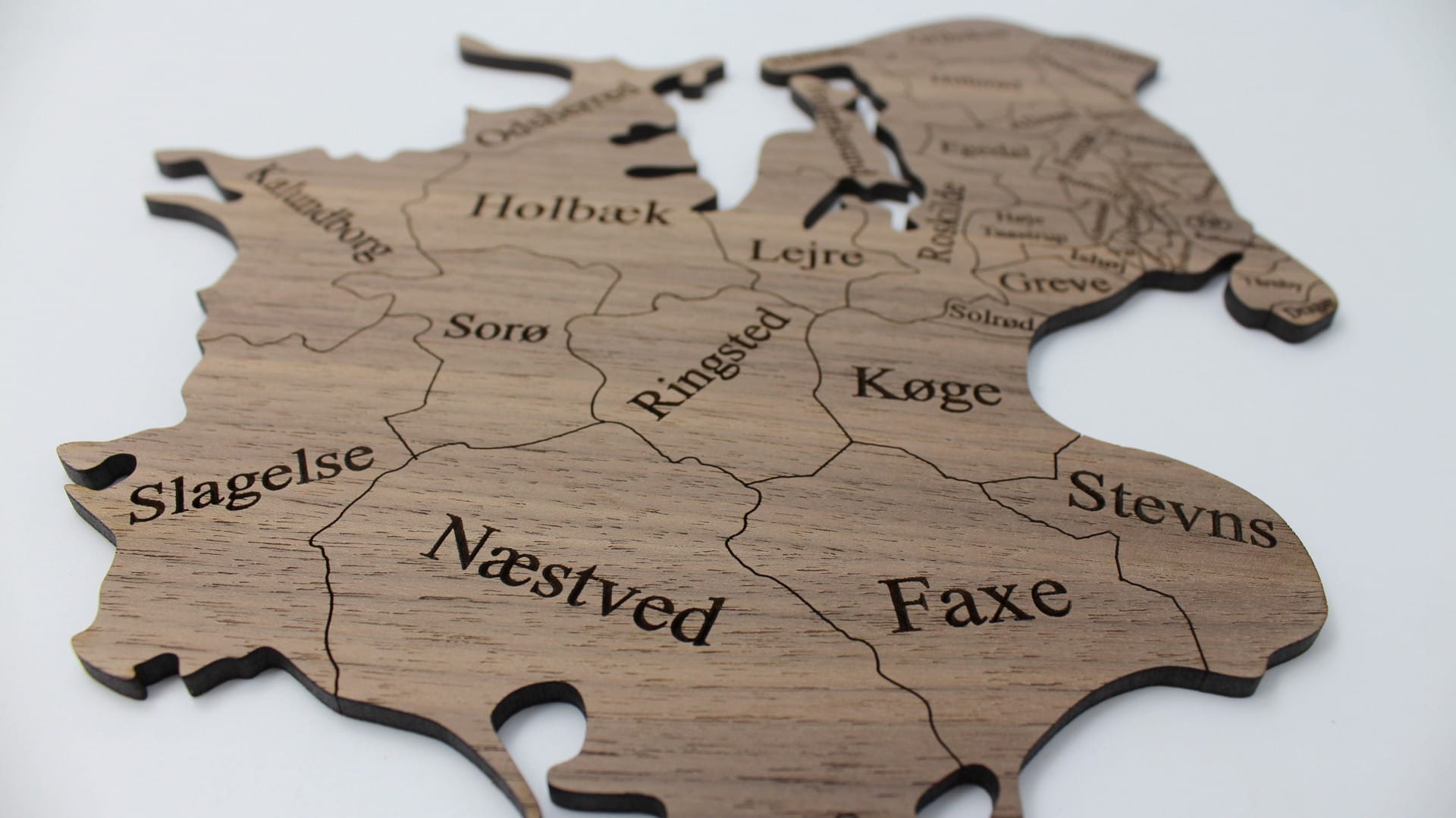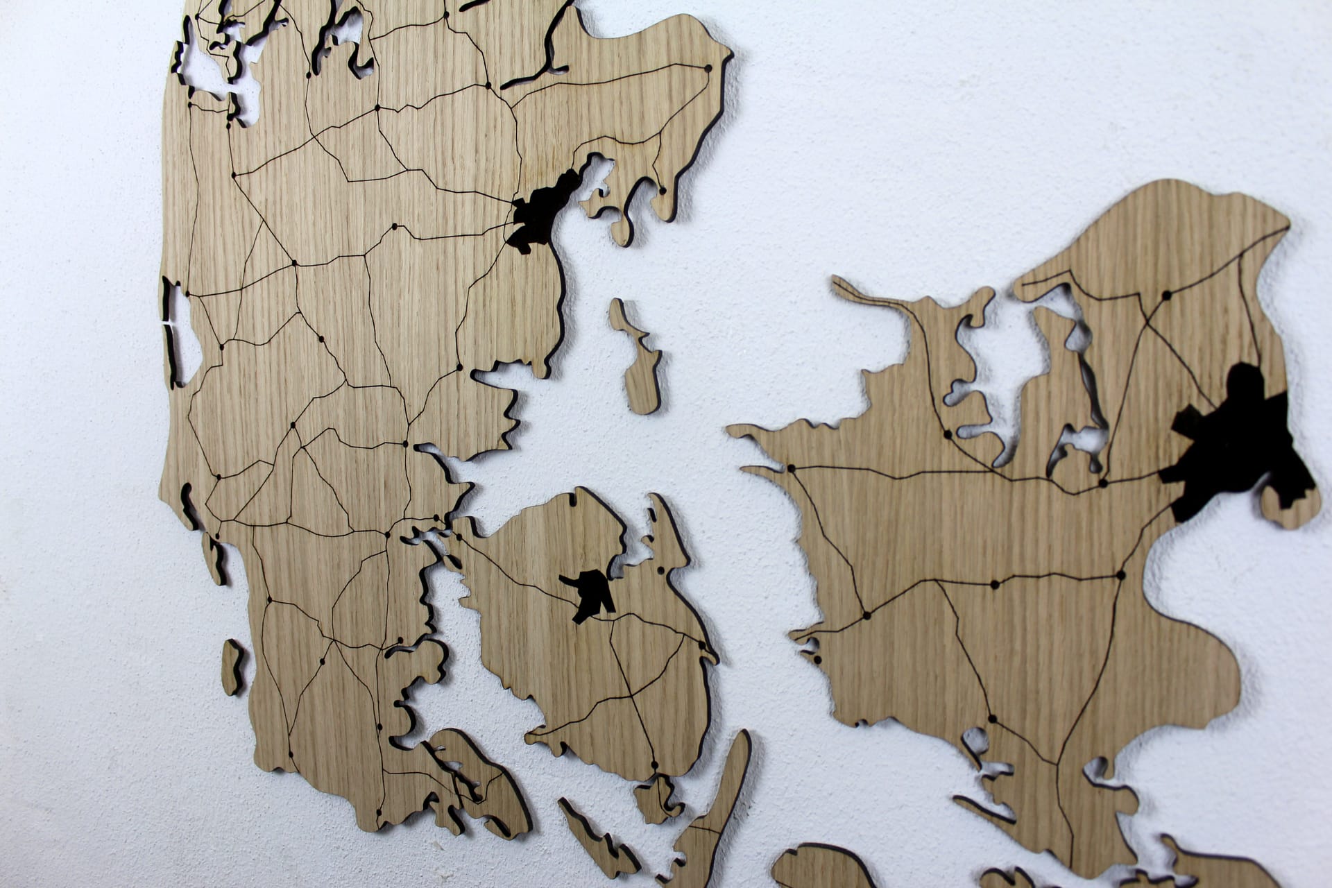 Luksuriøst Danmarkskort i træ til væggen