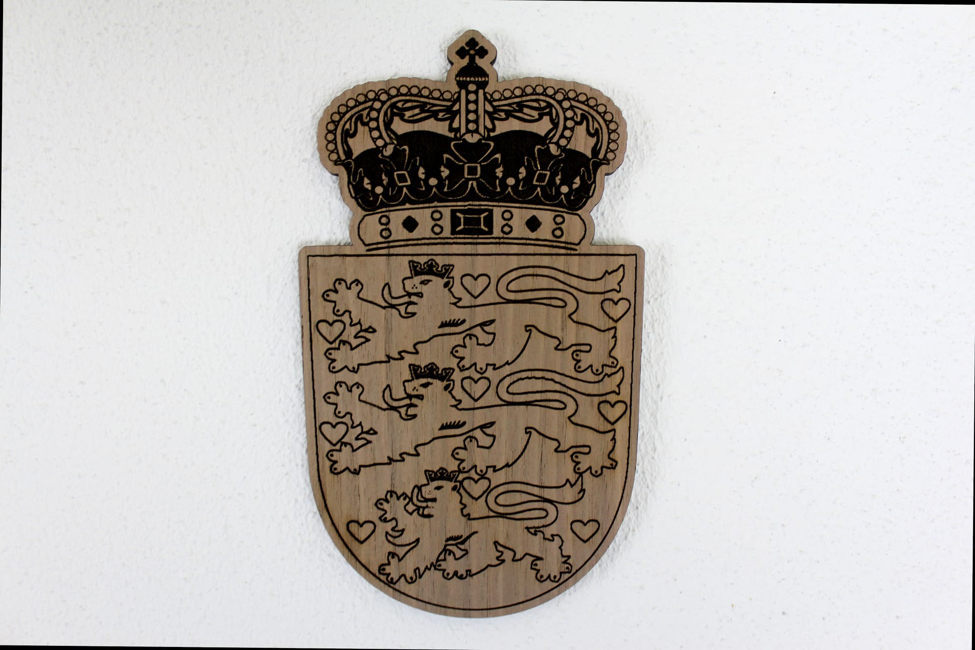 Til alle danmarkskort følger der det danske våbenskjold med i samme materiale som resten af kortet. Der følger også små stjerner med så du kan markere de specielle steder du ønsker.