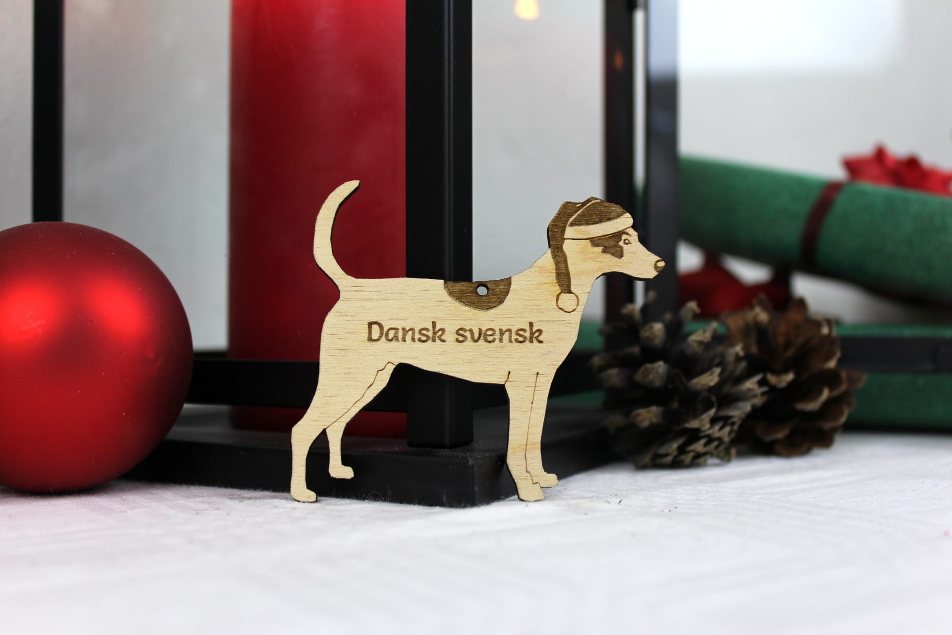 Sød Dansk Svensk gårdhund ophæng med bomuldsnor, så den kan hænge og pynte flot på juletræet eller dekorationen.