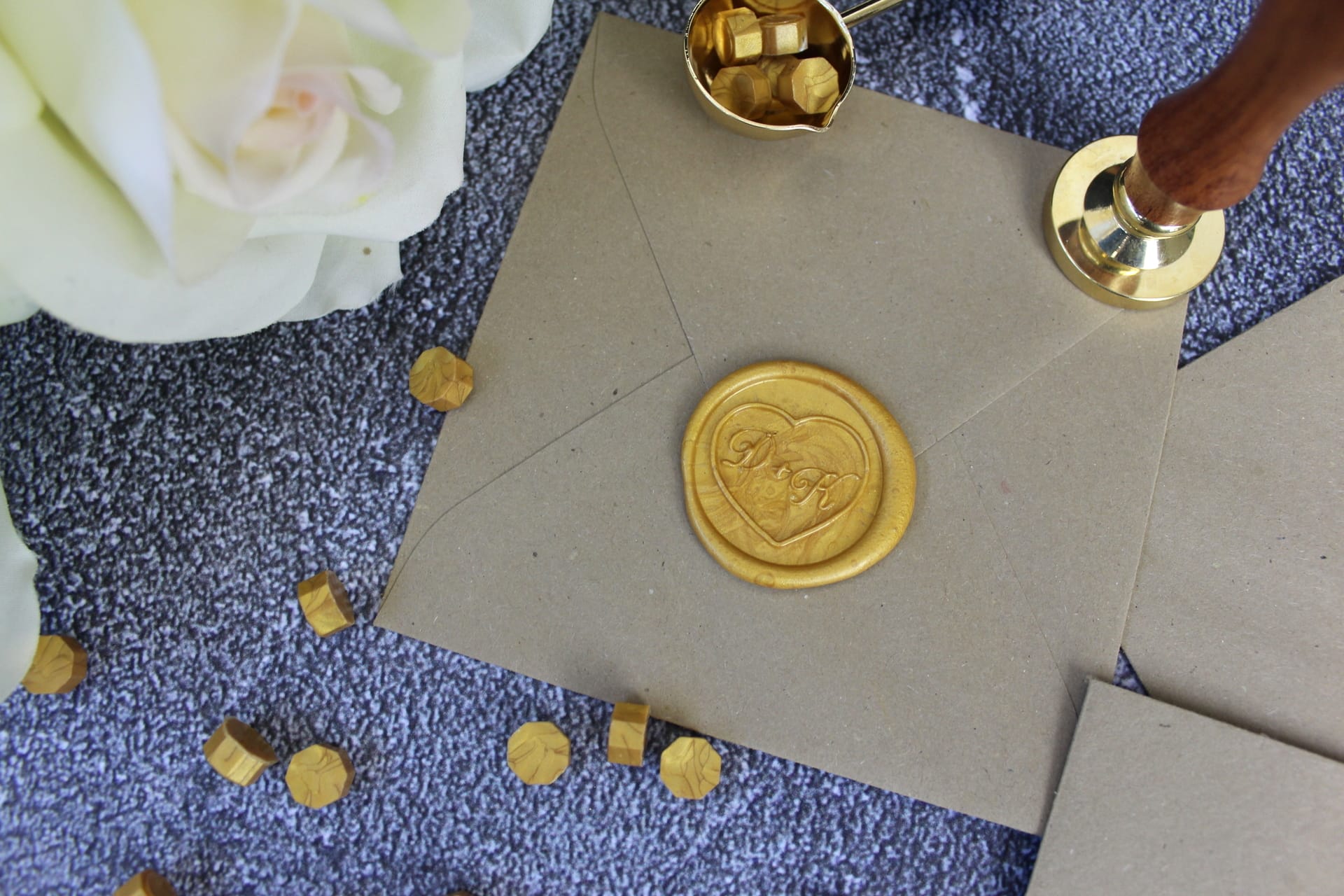Imponer dine gæster med et personlige voksstempel, en elegant løsning til at lukke dine invitationer med stil. Dette luksuriøse voksstempel er en must-have til alle par, forlovede par og personer, der vil gøre deres bryllup, jubilæum eller anden speciel begivenhed endnu mere særlig. Med en diameter på 30mm og fremstillet i messing med et blødt træhåndtag, giver stemplet en touch af elegance og stil, der passer til alle, der sætter pris på det fineste.