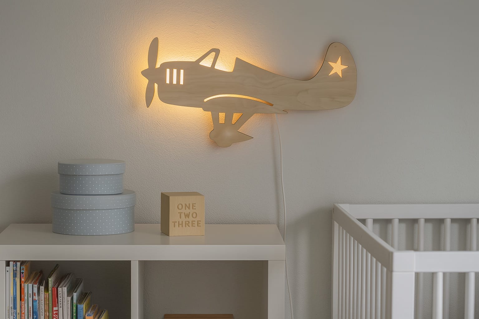Gør lampen endnu mere speciel ved at tilkøbe et banner med dit barns navn, som bliver elegant trukket af flyet. Det gør ikke bare lampen til en funktionel del af indretningen, men også til en personlig gave, som dit barn vil elske og værne om.