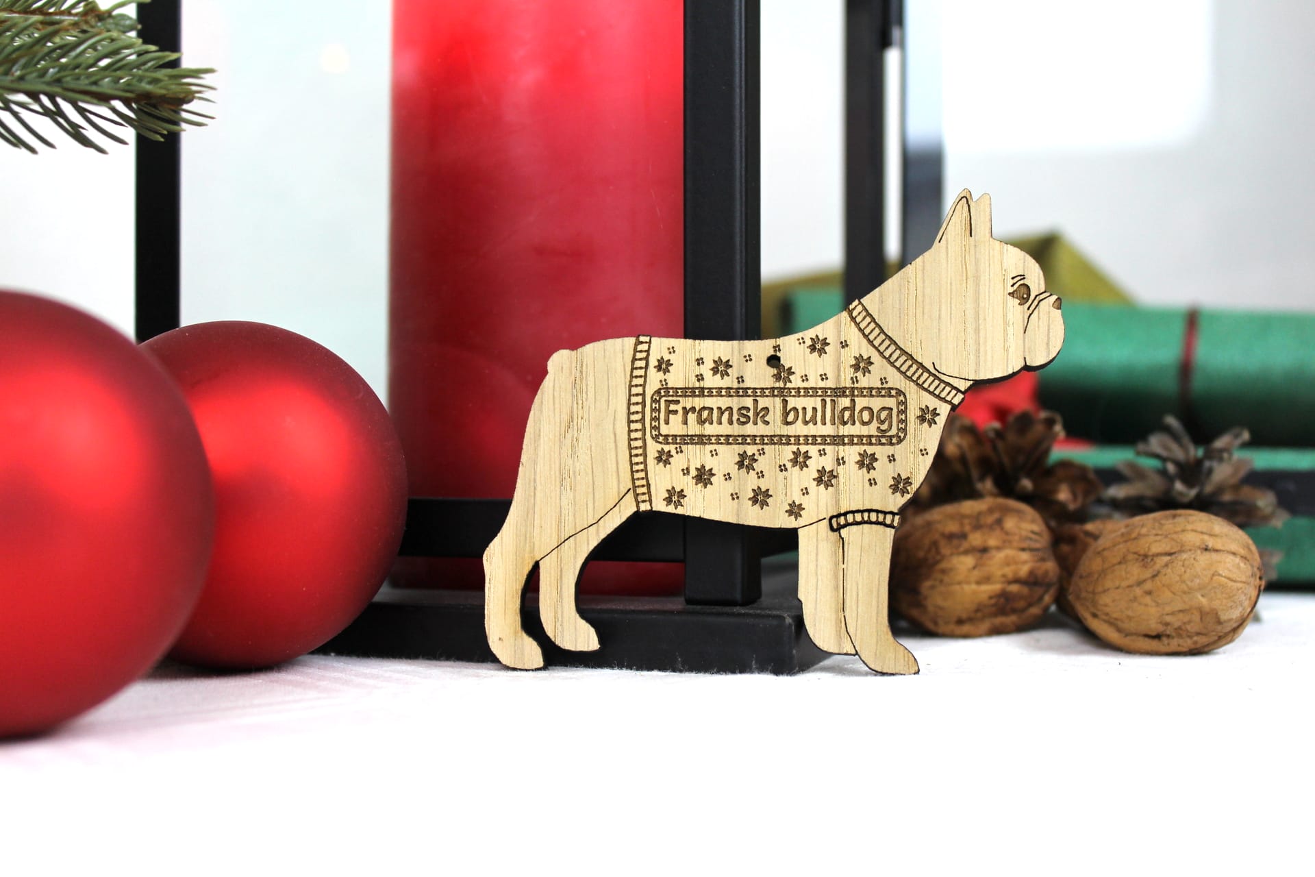 Sød Fransk bulldog ophæng med bomuldsnor, så den kan hænge og pynte flot på juletræet eller dekorationen.