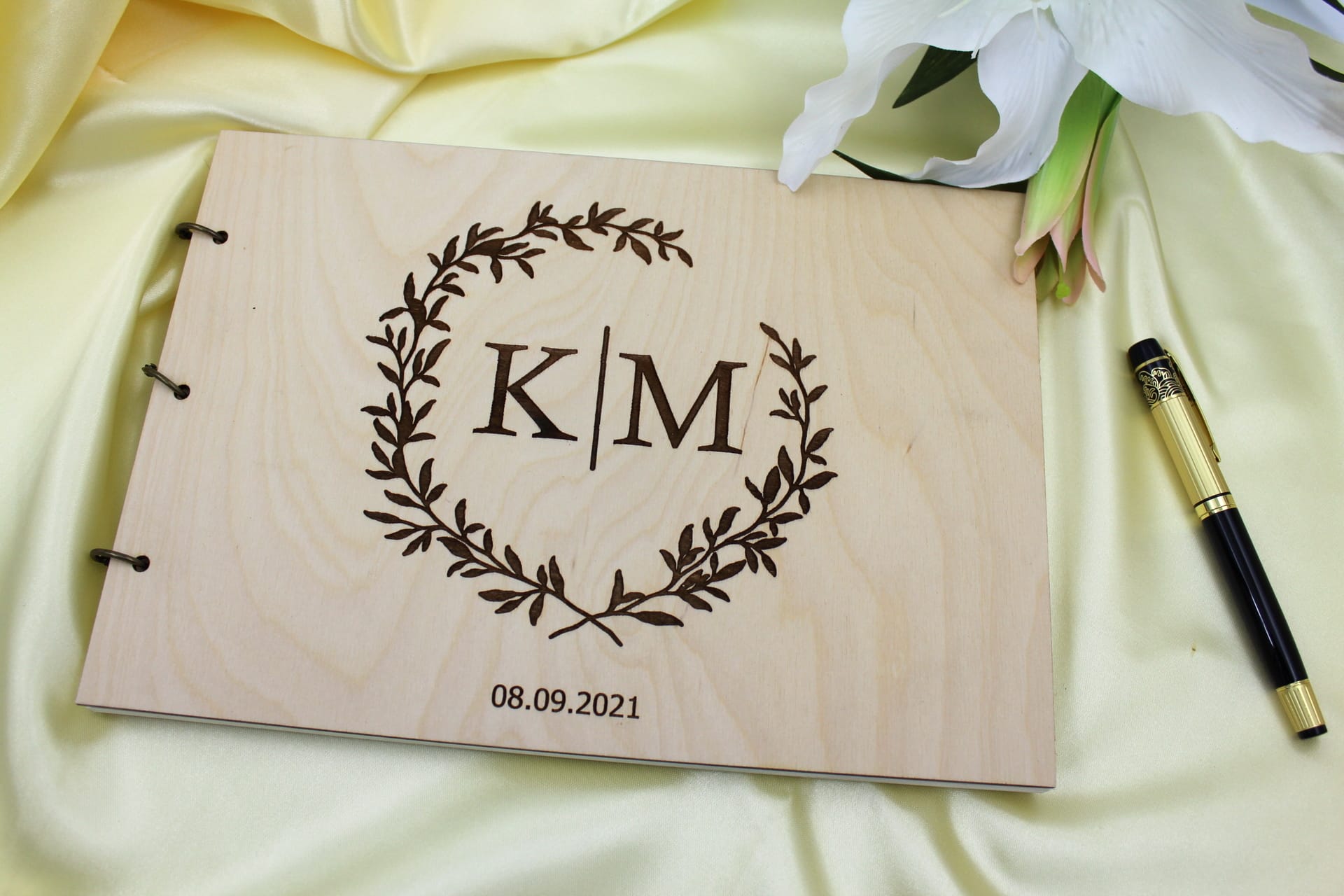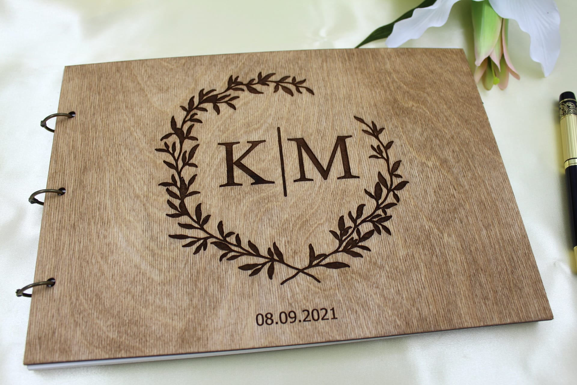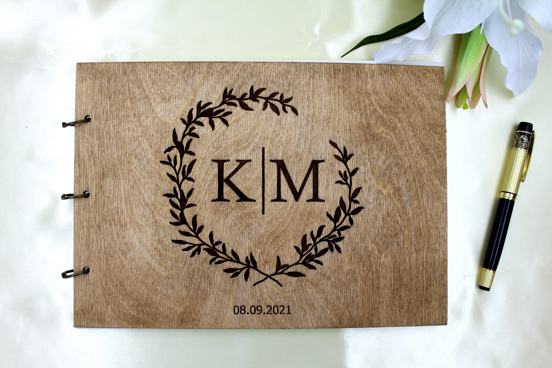 En smuk og personlig måde at samle minder og lykønskninger fra din bryllupsfest er at have en gæstebog. Vores Gæstebog i træ – Laurbær med jeres initialer og bryllupsdato er den perfekte måde at gøre det på. Vores gæstebog er lavet af høj kvalitet træ, akryl eller PU læder, og vores dygtige håndværkere bruger præcisionslaserskæring og laserindgravering til at skabe et unikt og personligt udtryk, som vil være en smuk påmindelse om din store dag.