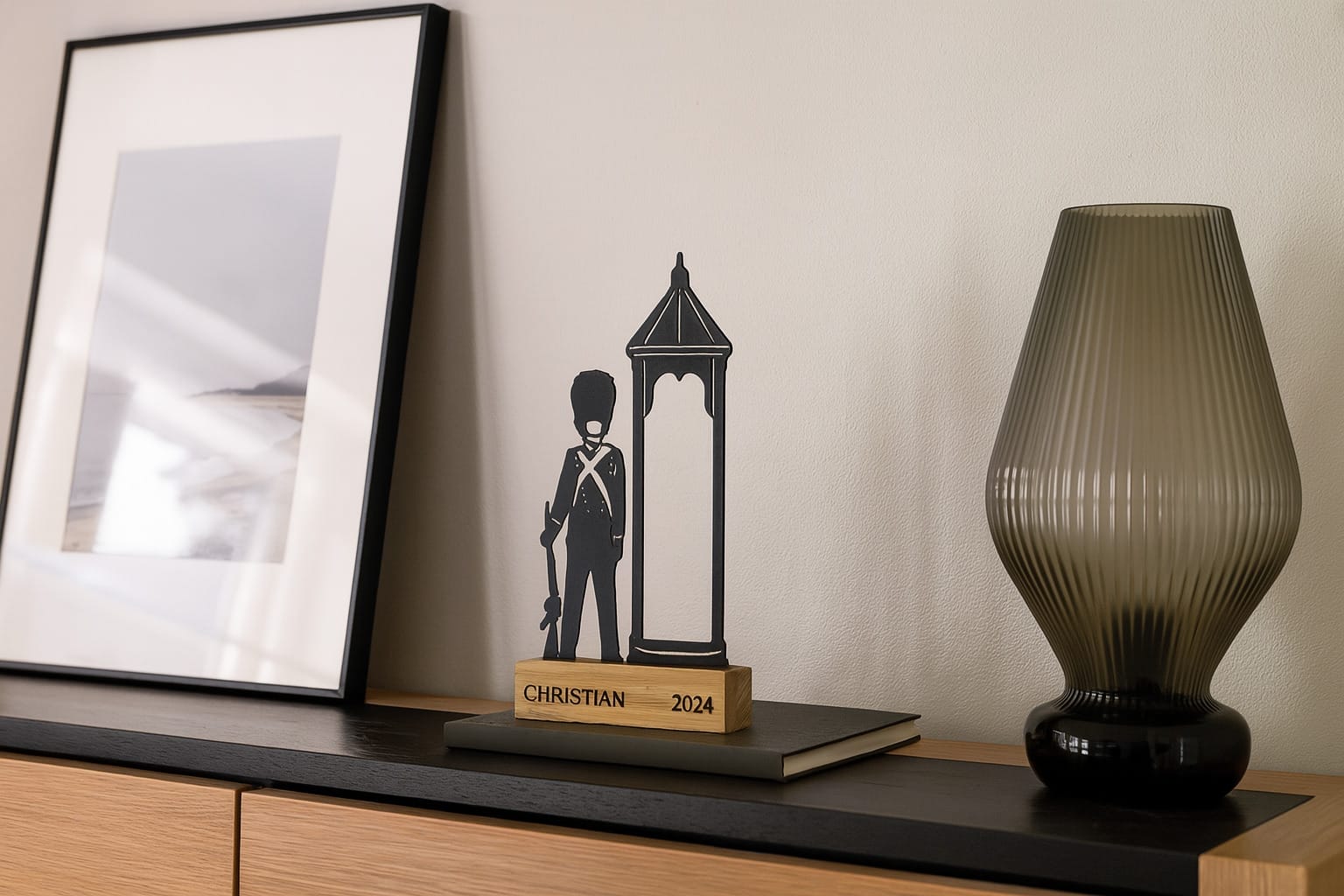 Med sit unikke udseende og nordiske charme er denne garder på træfod mere end bare et kunstværk. Det er en statement-piece til dit hjem. Placer den i stuen, på en reol eller endda på arbejdspladsen for at tilføje en strejf af moderne kunst og nordisk inspiration.