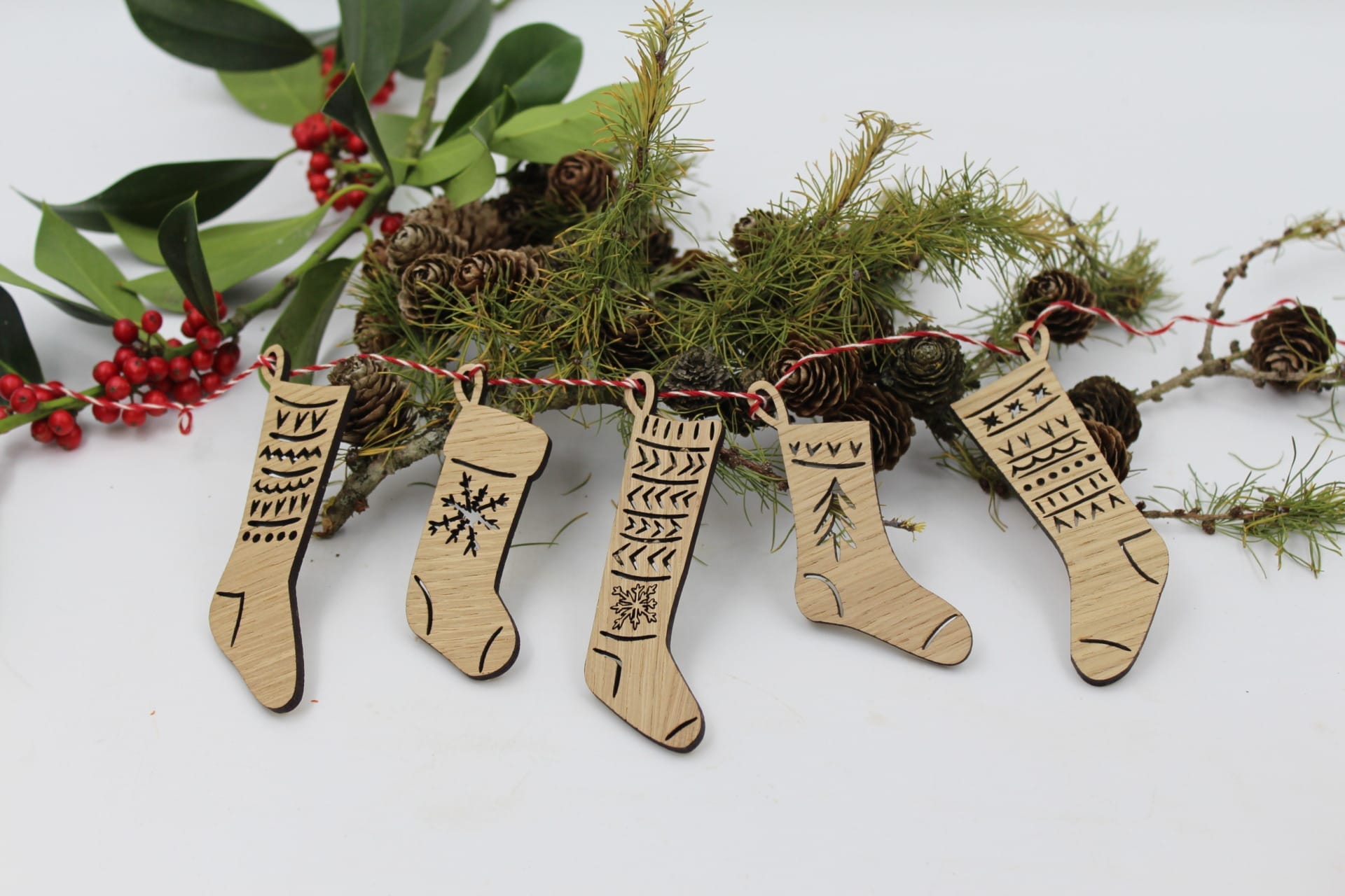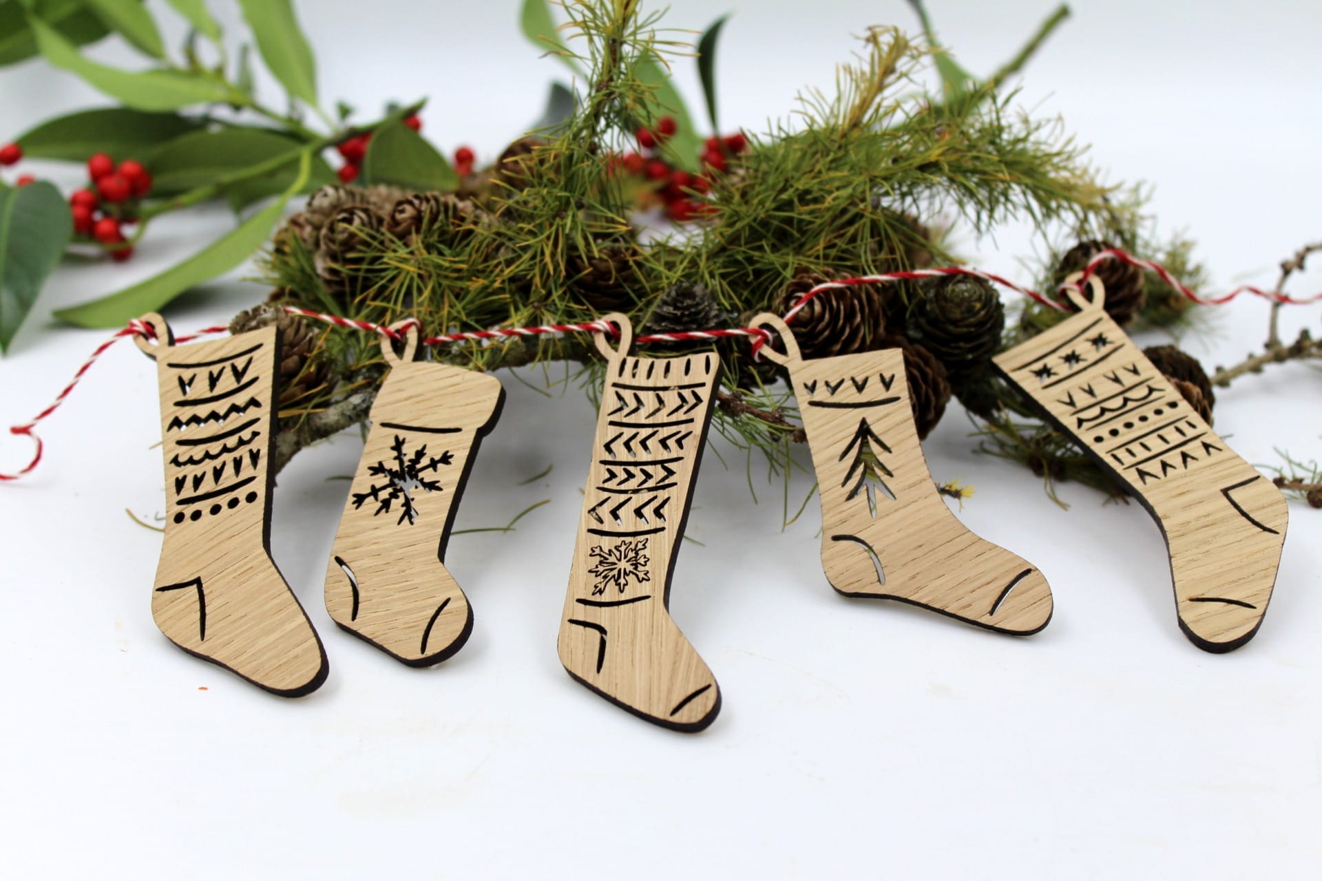 Håndværk i Højeste Kvalitet: Vores produkter er håndlavet af dygtige medarbejdere med omhu og præcision. Hver julestrømpe er udført i smukt egefinertræ, der udstråler varme og autenticitet. Dette garanterer, at dit ornament er af højeste kvalitet og vil være et glædeligt gensyn i hver december.