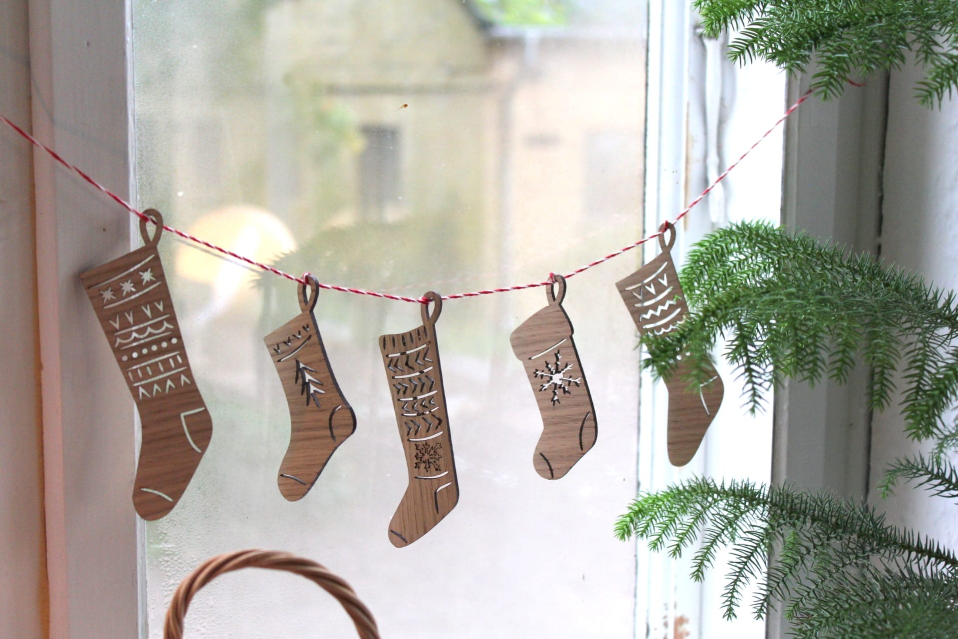 En charmerende guirlande med julestrømper lige til at hænge op.