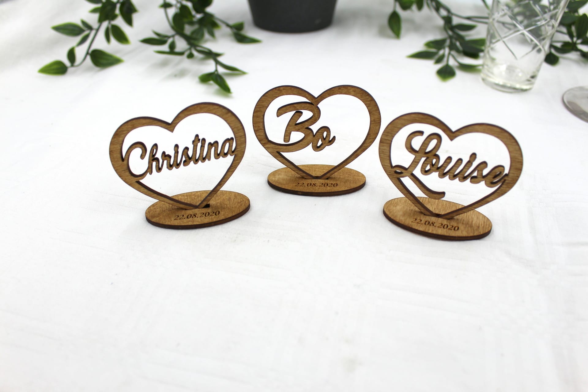 Så uanset om du leder efter et bordkort til konfirmation, bryllup, eller en anden særlig begivenhed, så er vores bordkort i hjerteform stående på fod en smuk og elegant tilføjelse til enhver bordopstilling. Med vores udskårne træbordkort, unikke akrylbordkort, og personliggjorte navne, kan du give dine gæster en mindeværdig oplevelse, som de vil huske i lang tid fremover.