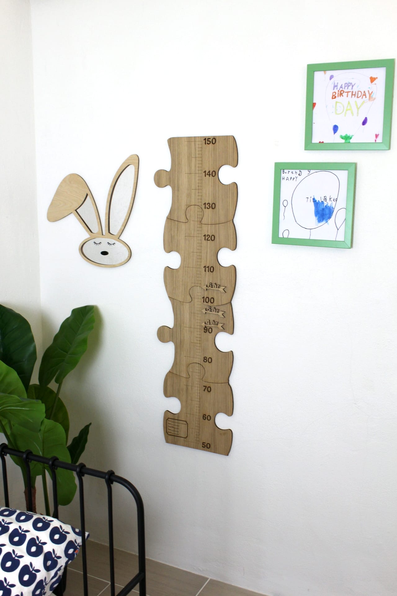 Højdemåleren kan følge barnets udvikling i mange år, og når tiden kommer til at pakke den væk, kan den pakkes ned i en lille papkasse som et minde om en dejlig tid.