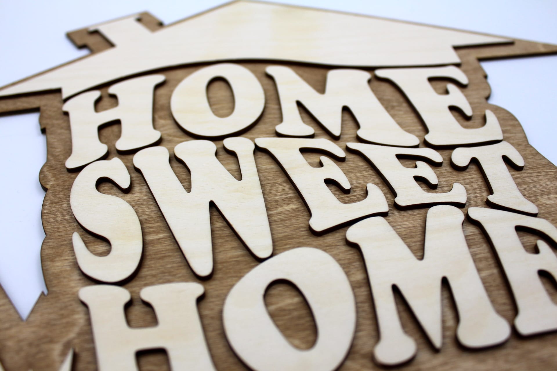 Home sweet home skilt i træ. Pynt din væg med dette flotte skilt i træ.