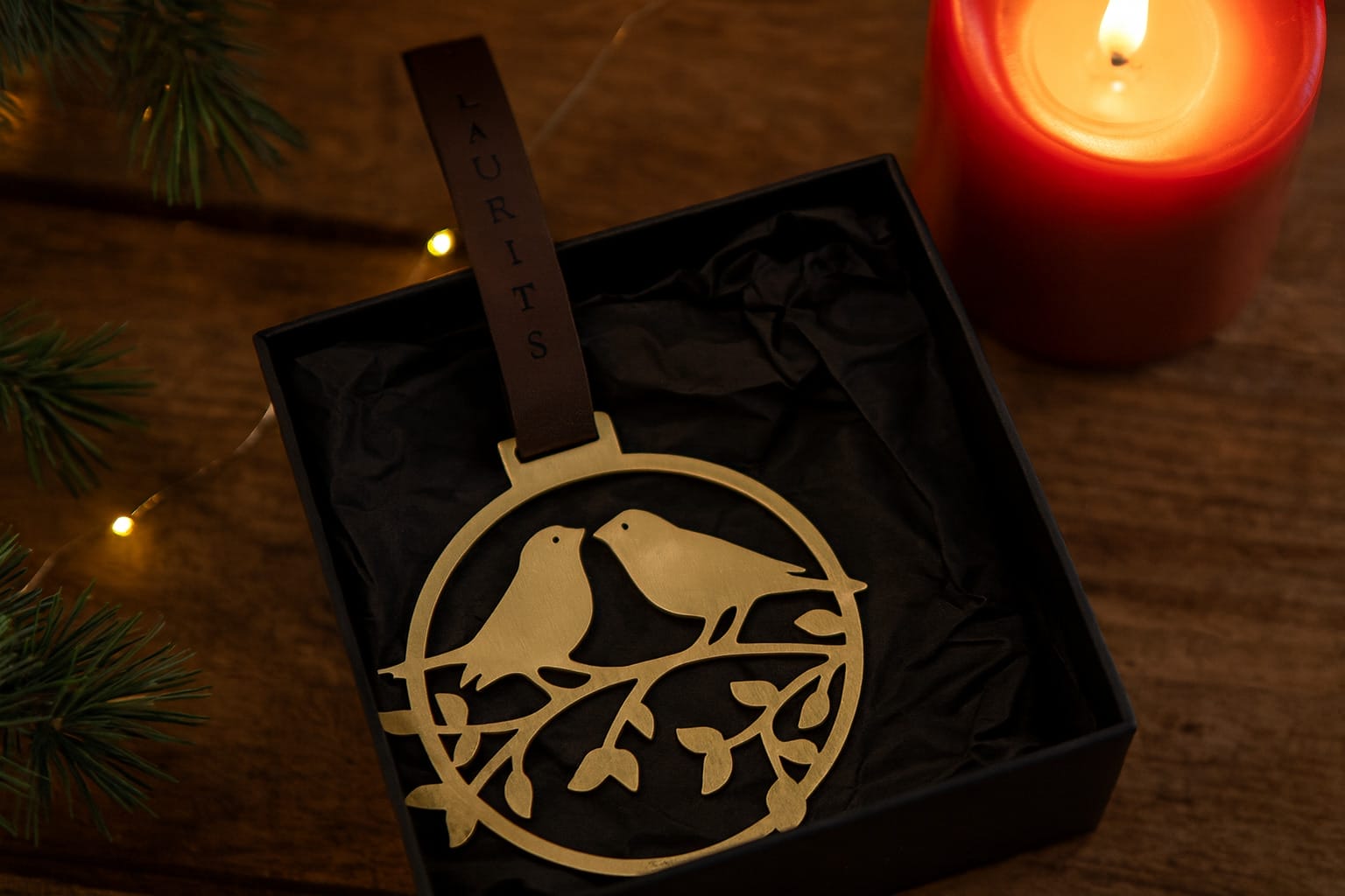 Hvert ornament leveres med en elegant læderstrop i slidstærkt PU-læder. På stroppen kan du få indgraveret et navn, hvilket gør julepynten unik og helt særlig. Det kan være et barnebarns navn, en bedsteforælder eller en elsket, man ønsker at mindes. En lille detalje, der giver stor betydning og gør ornamentet til meget mere end blot pynt.