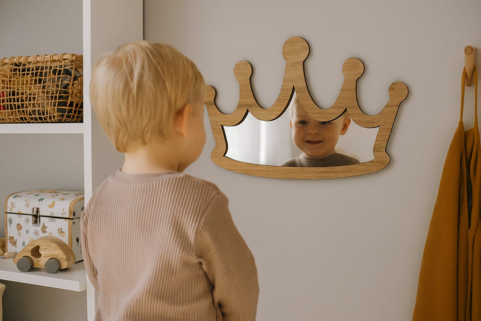 Gør børneværelset lidt mere eventyrligt med denne smukke krone – et børnespejl til væg, der kombinerer dansk kvalitet med et magisk design.