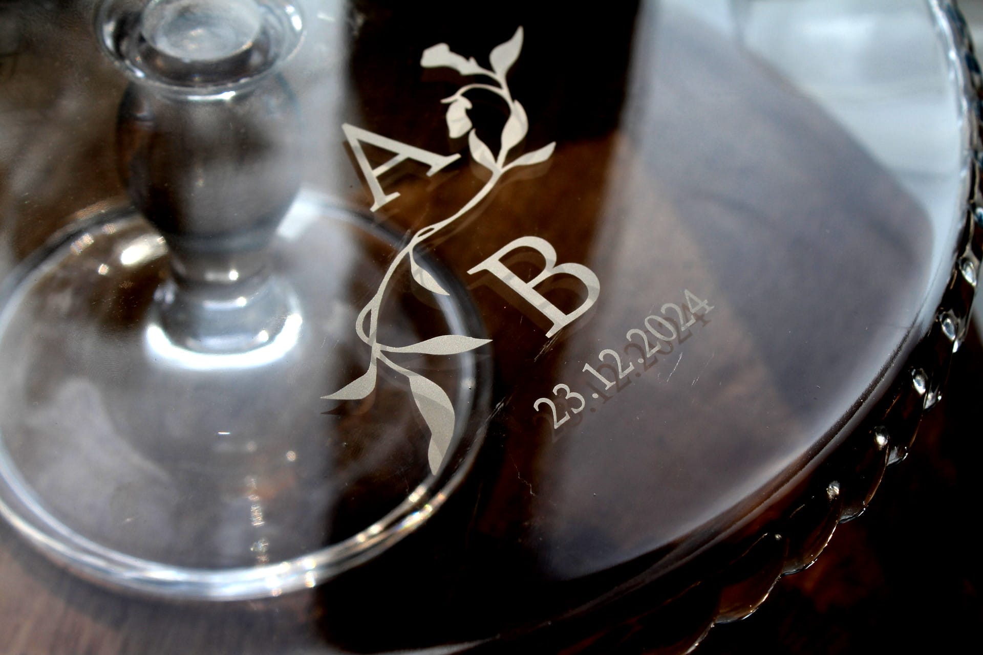Elegant lagkagefad med indgravering, der kombinerer tidløs skønhed med personligt touch. Dette vidunderlige fad, der måler 32 cm i diameter og er 11,5 cm højt, og giver plads til selv de største lagkager. Det tidløse design og den personlige indgravering gør det til den perfekte gave til enhver anledning. Fremstillet i robust glas, gør at fadet er både holdbart og kan gå i opvaskemaskinen. Dette sikrer både praktisk anvendelse og nem vedligeholdelse. Ikke blot en funktionel serveringsløsning, men også en smuk dekoration, der vil løfte ethvert festligt bord.