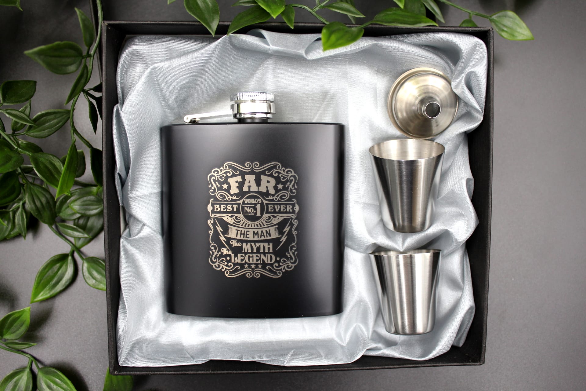 Denne lommelærke med gravering er det perfekte valg, når du ønsker at give en personlig gave, der skiller sig ud. Den kommer i en flot gaveæske med satinstof, hvilket gør præsentationen ekstra speciel. Med en kapacitet på 177 ml og et medfølgende tragt, der sikrer nem påfyldning, er den både praktisk og stilfuld.