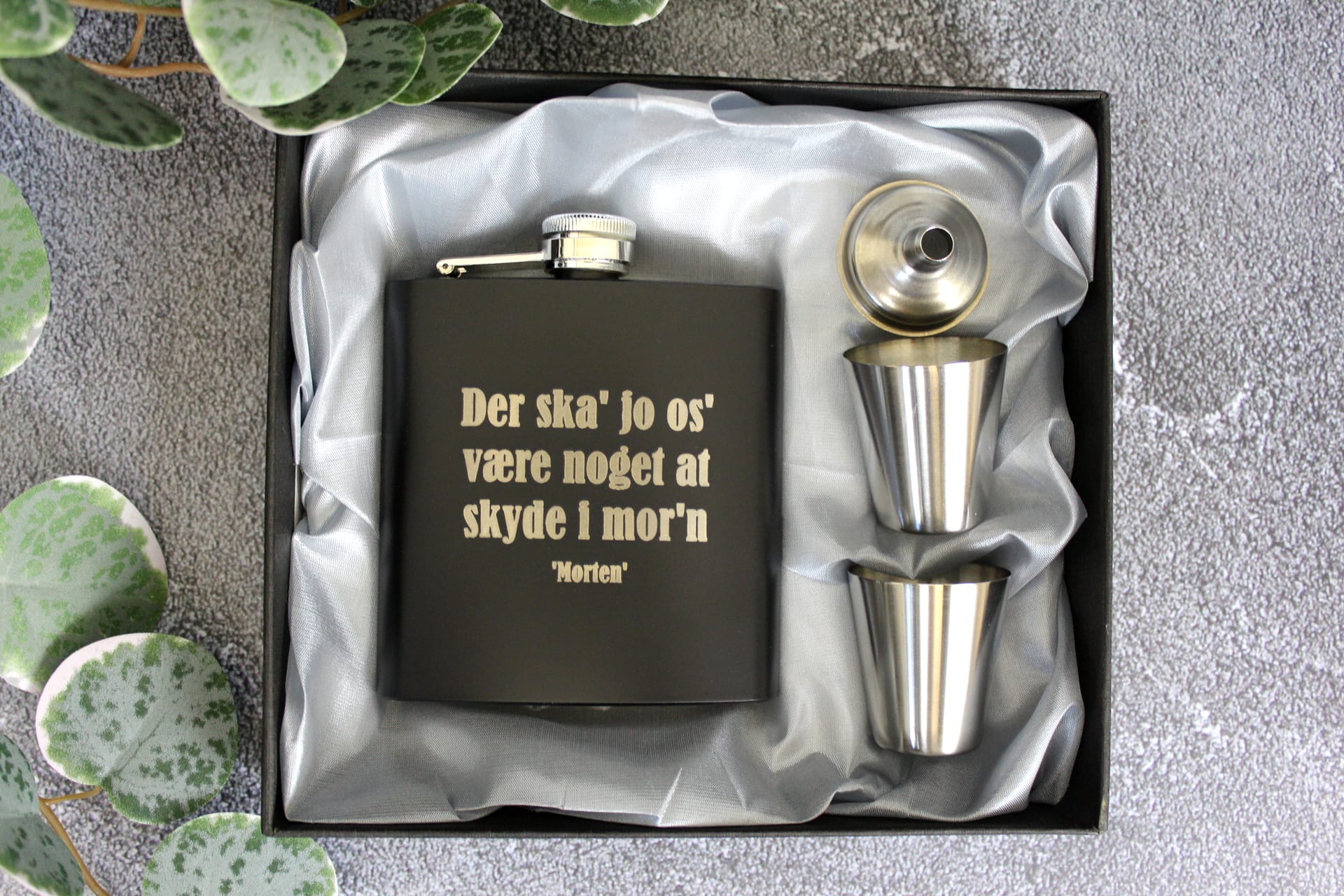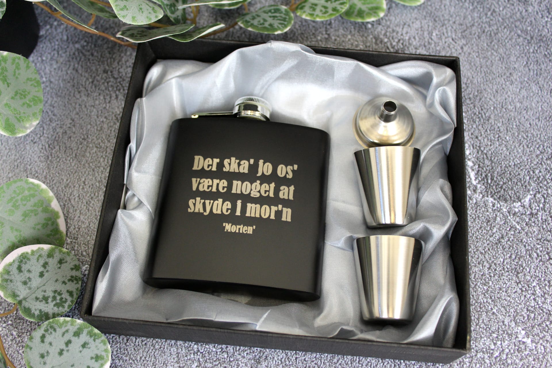 - Design: Sjov jægertekst med mulighed for personlig gravering
