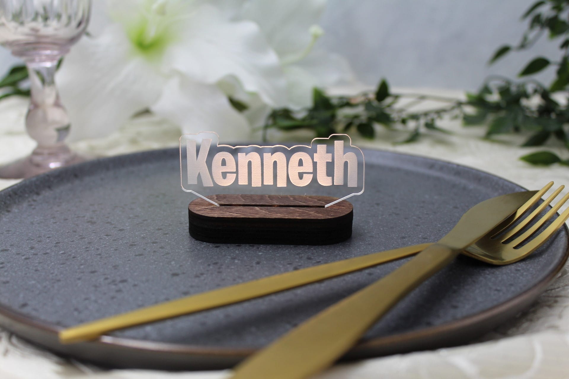 Hvert bordkort er lavet af smukt akryl og præsenteres på en mørk træfod, der ikke kun tilføjer en naturlig elegance, men også giver dig mulighed for at tænde og slukke lyset med lethed ved hjælp af ON/OFF-knappen. Den subtile kombination af materialer skaber et unikt og luksuriøst udseende.