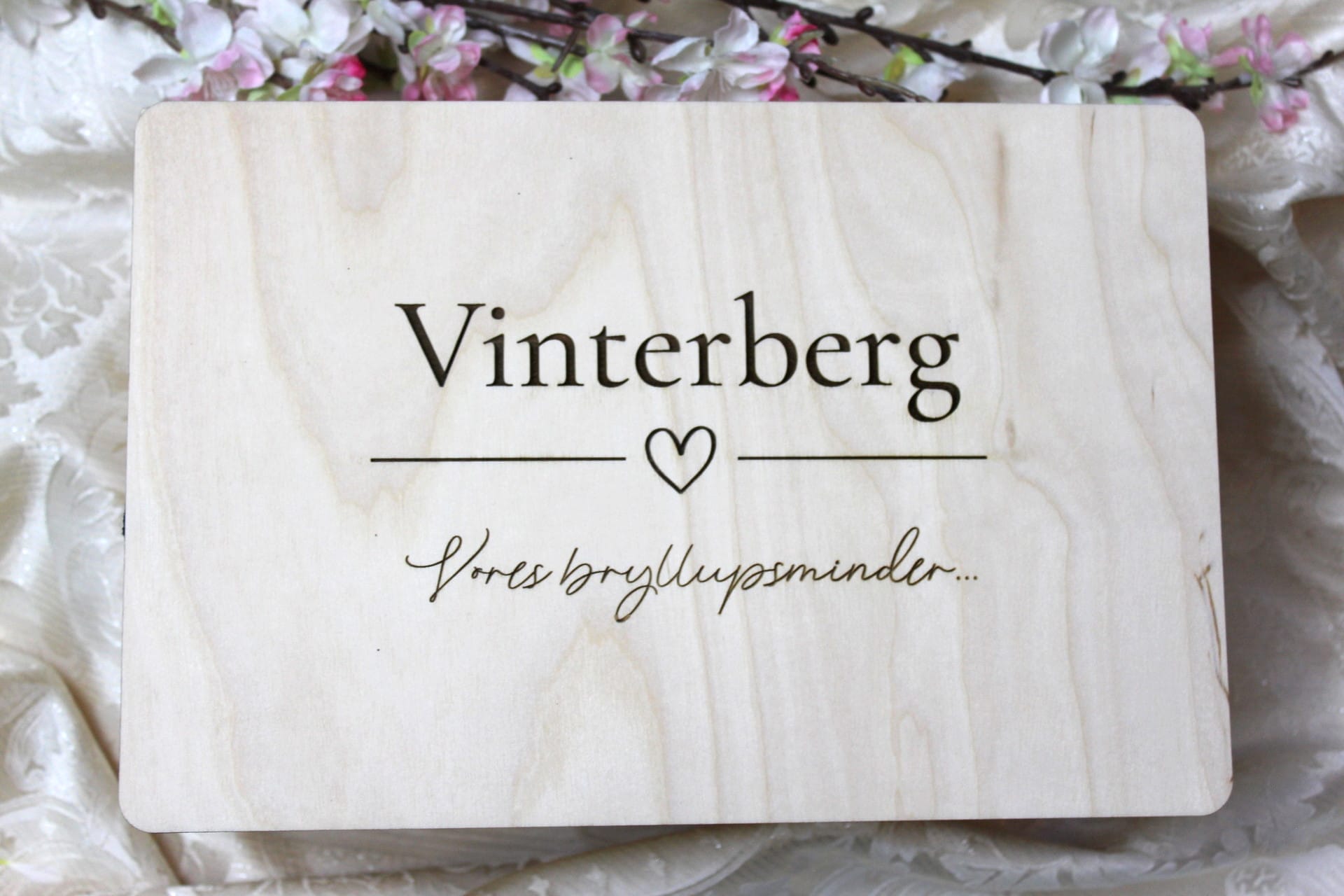 Dyk ned i en verden af kærlighed og minder med vores eksklusive Memorybox, designet specielt til bryllupper. Denne unikke mindekasse, udført i smukt birkefiner og dekoreret med et fint hjerte, er det ideelle valg til at bevare de mest betydningsfulde øjeblikke fra den store dag – eller som en fin opbevaring til personlige hilsener fra den store dag.
