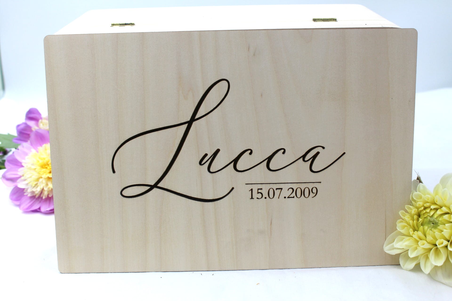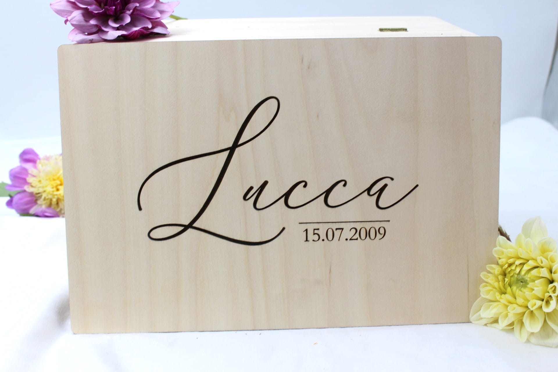 Vores elegante memorybox med smukt graveret navn er den perfekte gave til fødselaren, dåbsbarnet, konfirmanden eller enhver, der ønsker at bevare særlige minder. Denne personlige mindekasse i birkefiner er designet til at gemme de mest værdifulde øjeblikke fra livets store begivenheder.