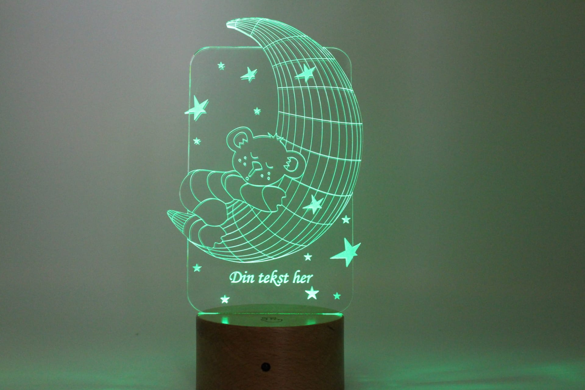 Flot og beroligende natlampe med egen tekst.