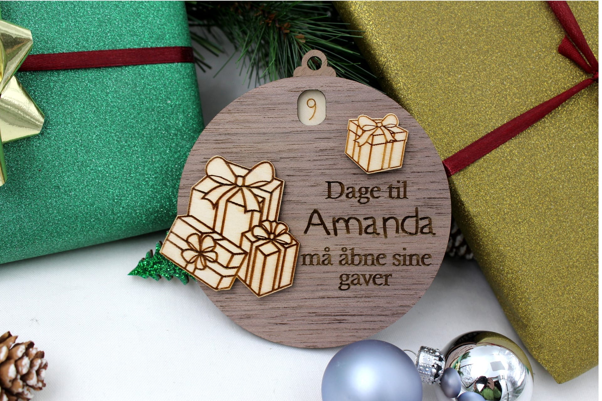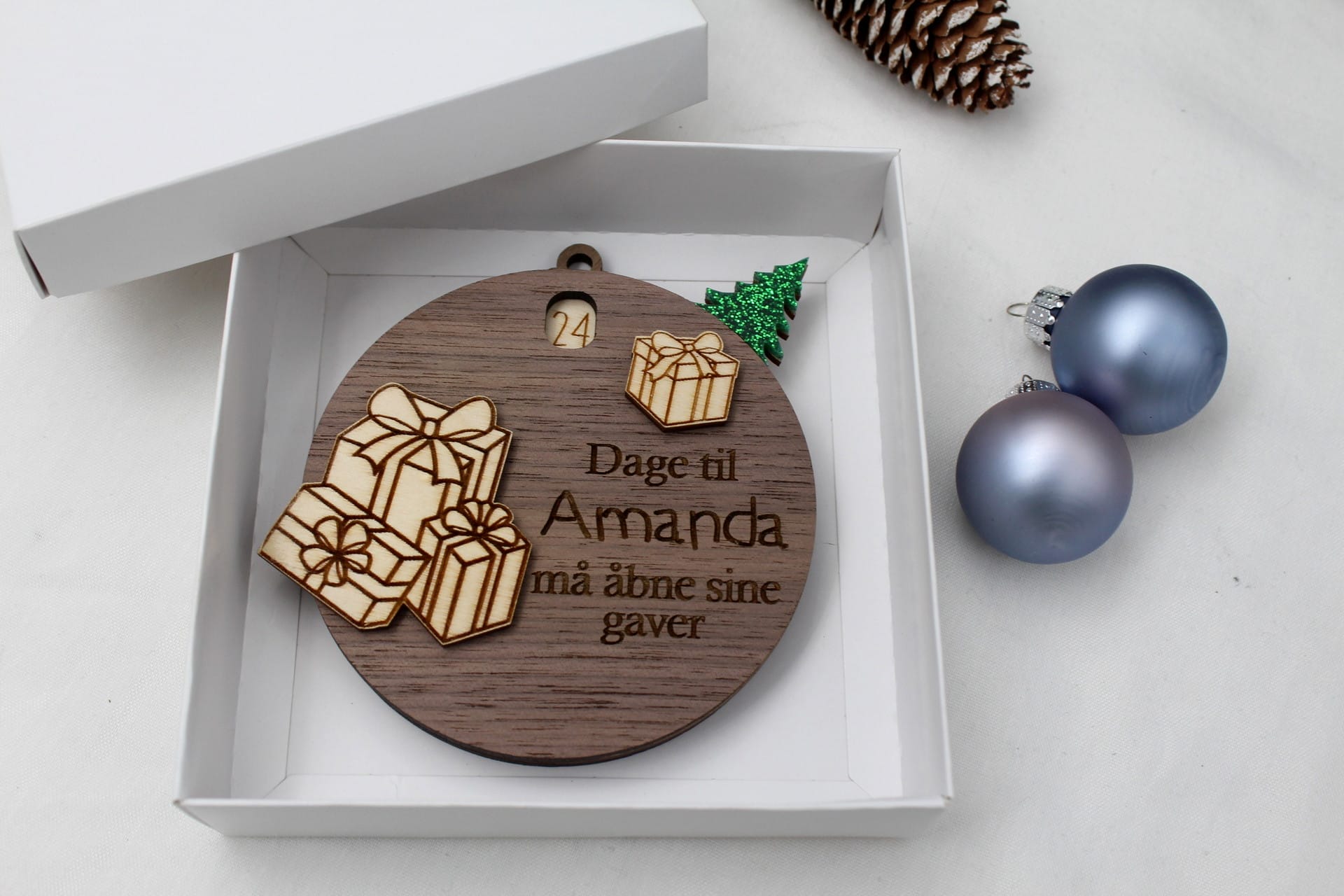 Nedtælling til jul – Med gaver er mere end bare pynt. Det er en del af julens traditioner og minder. Med sin unikke funktion som nedtællingsur og muligheden for personlig indgravering, vil dette ornament bringe smil og glæde i mange år fremover. Det er den perfekte måde at fejre nedtællingen til jul og skabe varme minder sammen med familie og venner. Giv en personlig gave, der virkelig skiller sig ud, og lad denne nedtælling til jul blive en del af jeres juletraditioner.