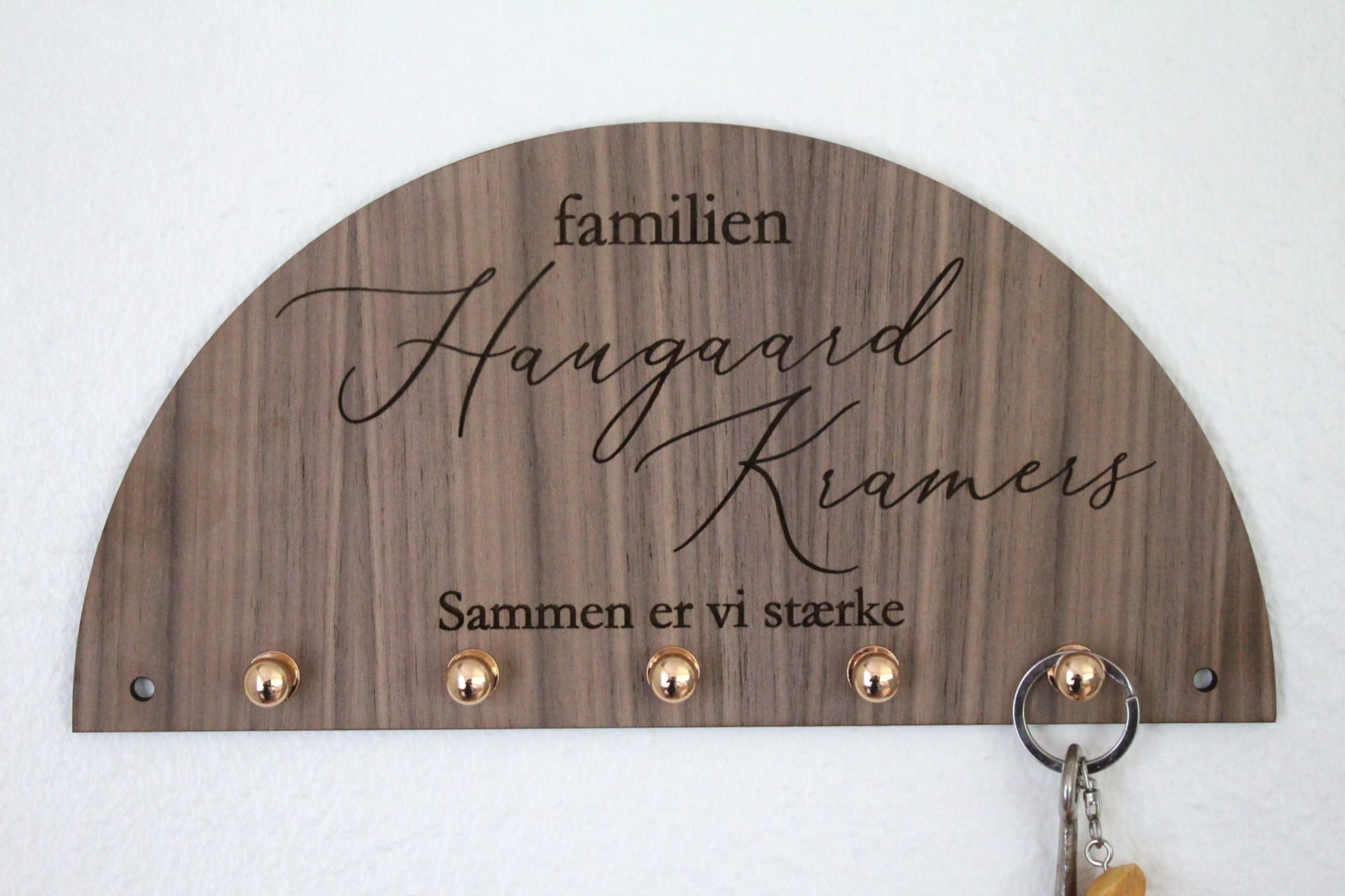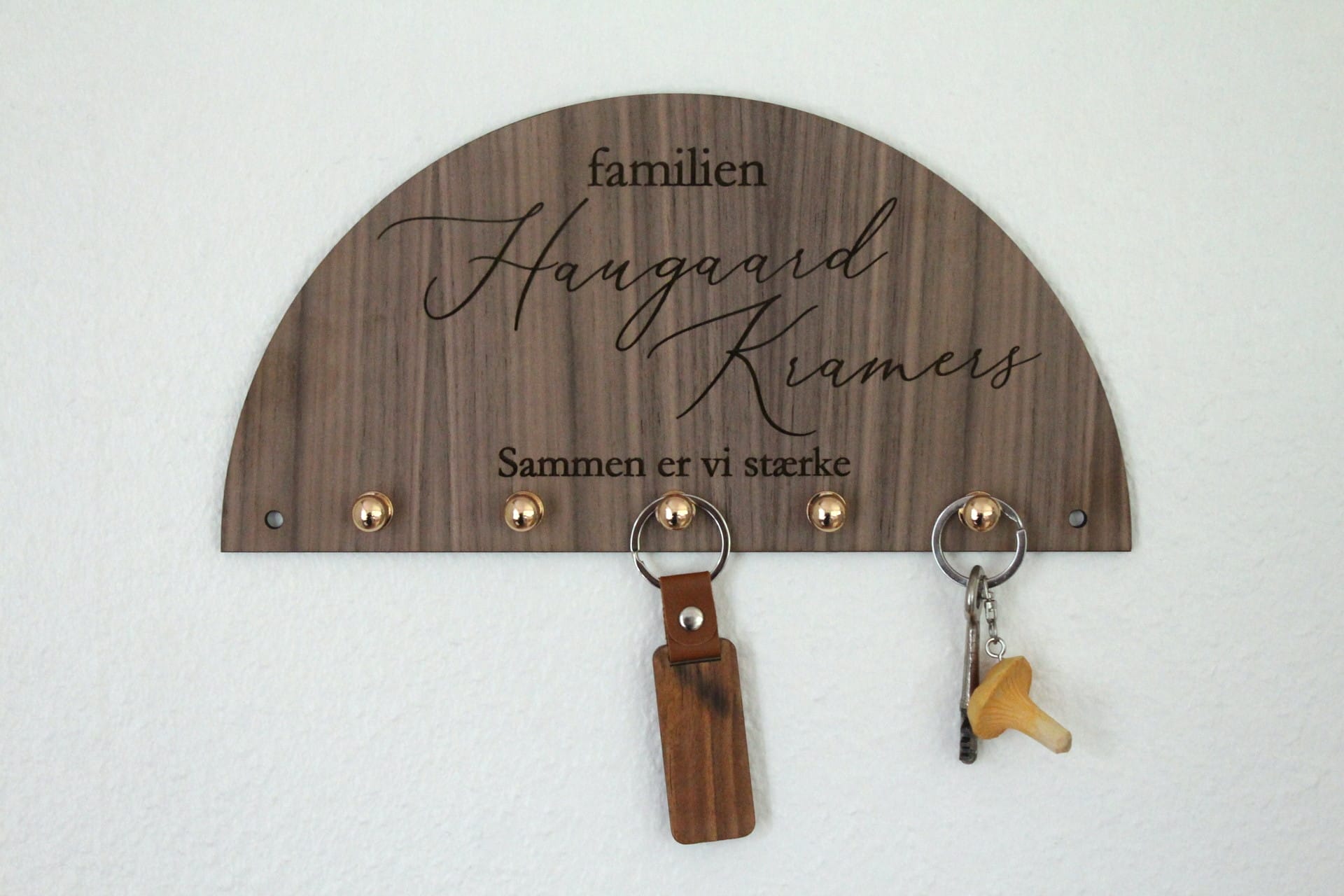En nøgleholder med navn er ikke blot et sted at hænge dine nøgler – den er en integreret del af dit hjem. Med valget mellem birk, eg eller amerikansk valnøddetræ kan du finde den perfekte nøgleholder, der matcher din stil. Den personlige indgravering og de fine detaljer gør den til en unik genstand, der både er praktisk og dekorativ.