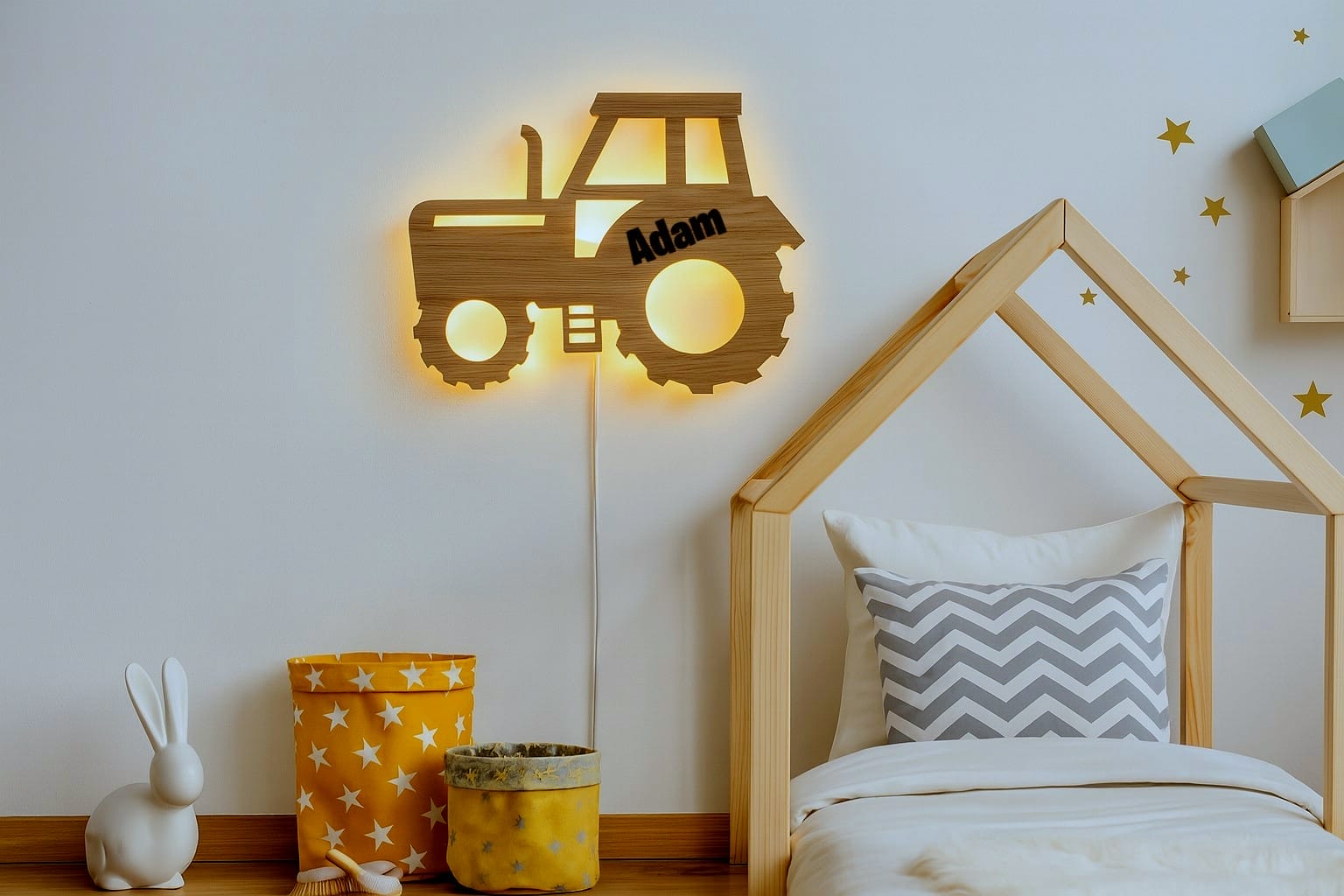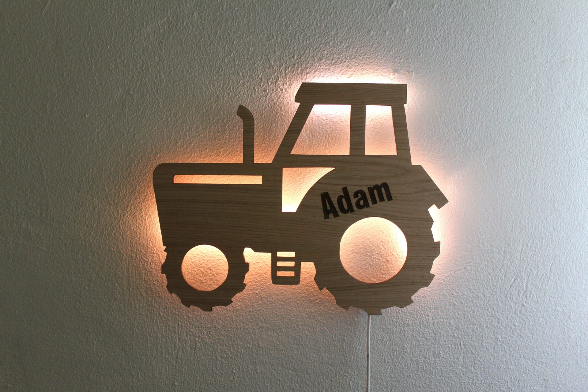 Opdag den perfekte gaveide, der vil lyse op i ethvert børneværelse – vores personlige traktorvæglampe med navn!
