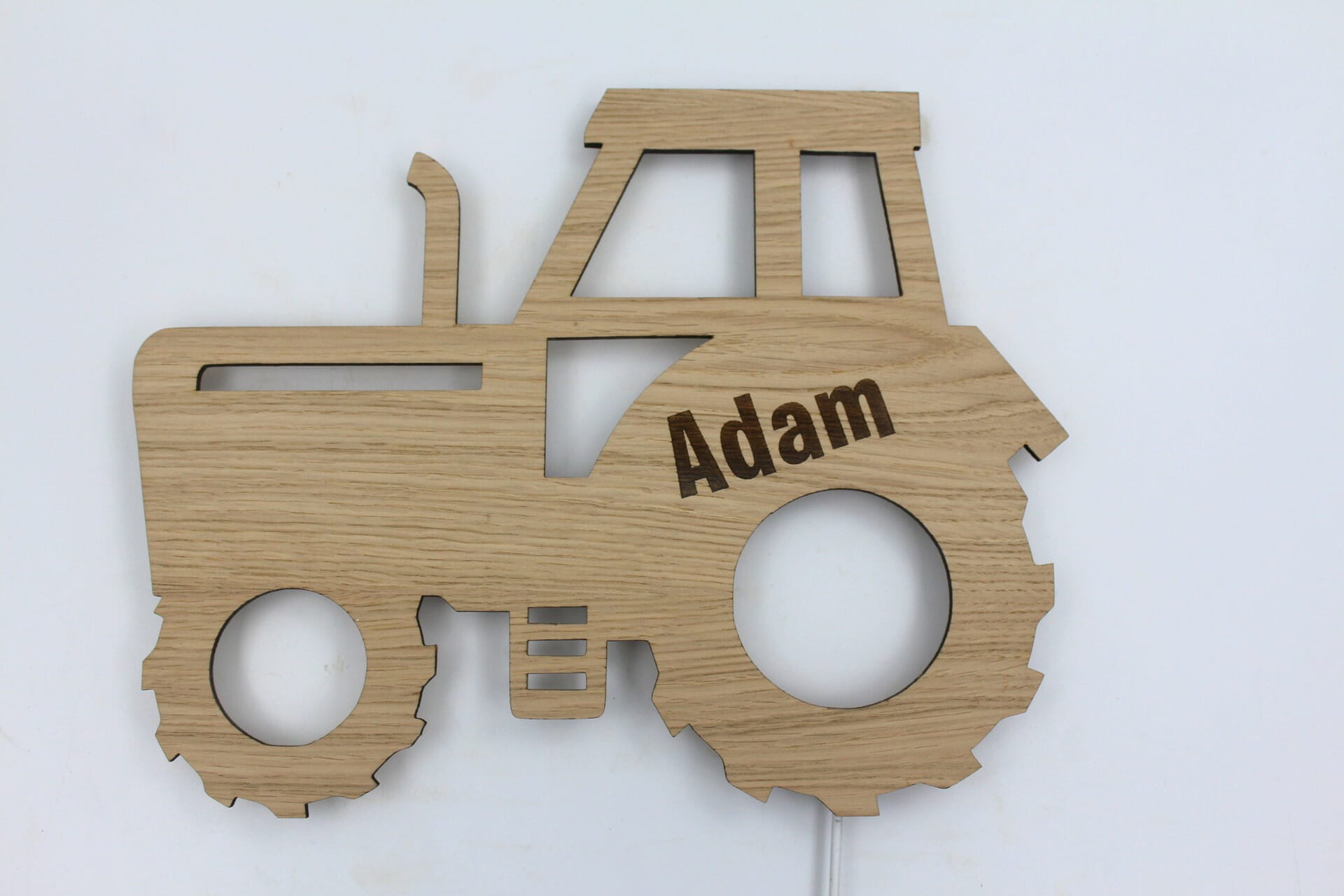 Vores Traktor LED lampe med navn er fremstillet med omhu og præcision. Det smukke egetræsfiner giver den en naturlig fornemmelse, der passer perfekt til ethvert børneværelse.