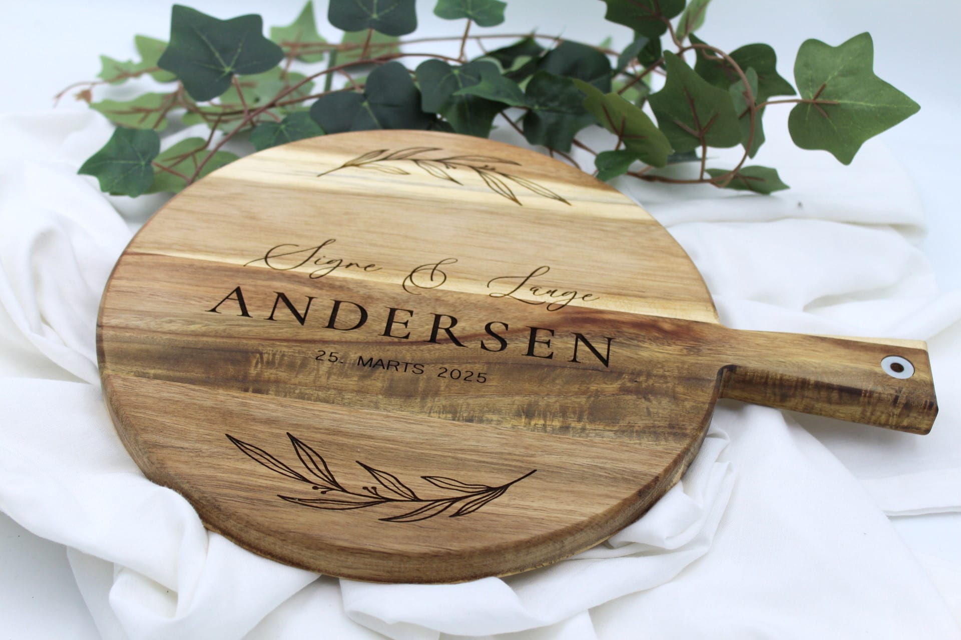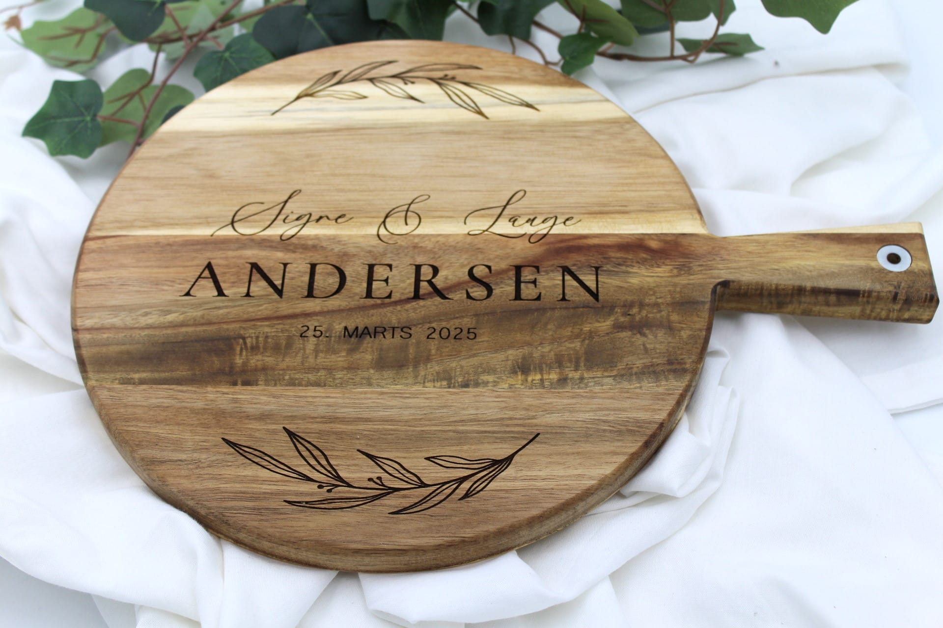 Med sin tidløse gravering og smukke udseende er dette skærebræt en fantastisk gaveidé. Det vil uden tvivl blive værdsat som en gave til både bryllup eller housewarming og vil bringe en personlig og stilfuld detalje til ethvert hjem.