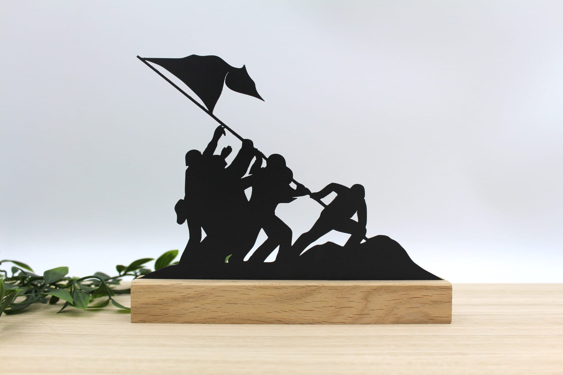 Smukt Dansk Design og Nordisk Minimalisme. Vores Flag over Iwo Jima skulptur er mere end bare et kunstværk – det er et udtryk for nordisk inspireret brugskunst i sin fineste form. Med rødder i det smukke Dansk design og lakeret stål, hviler denne moderne kunstskulptur majestætisk på en solid eg-træfod. Det er ikke blot en dekoration; det er historisk fortolkning indflettet i din indretning.