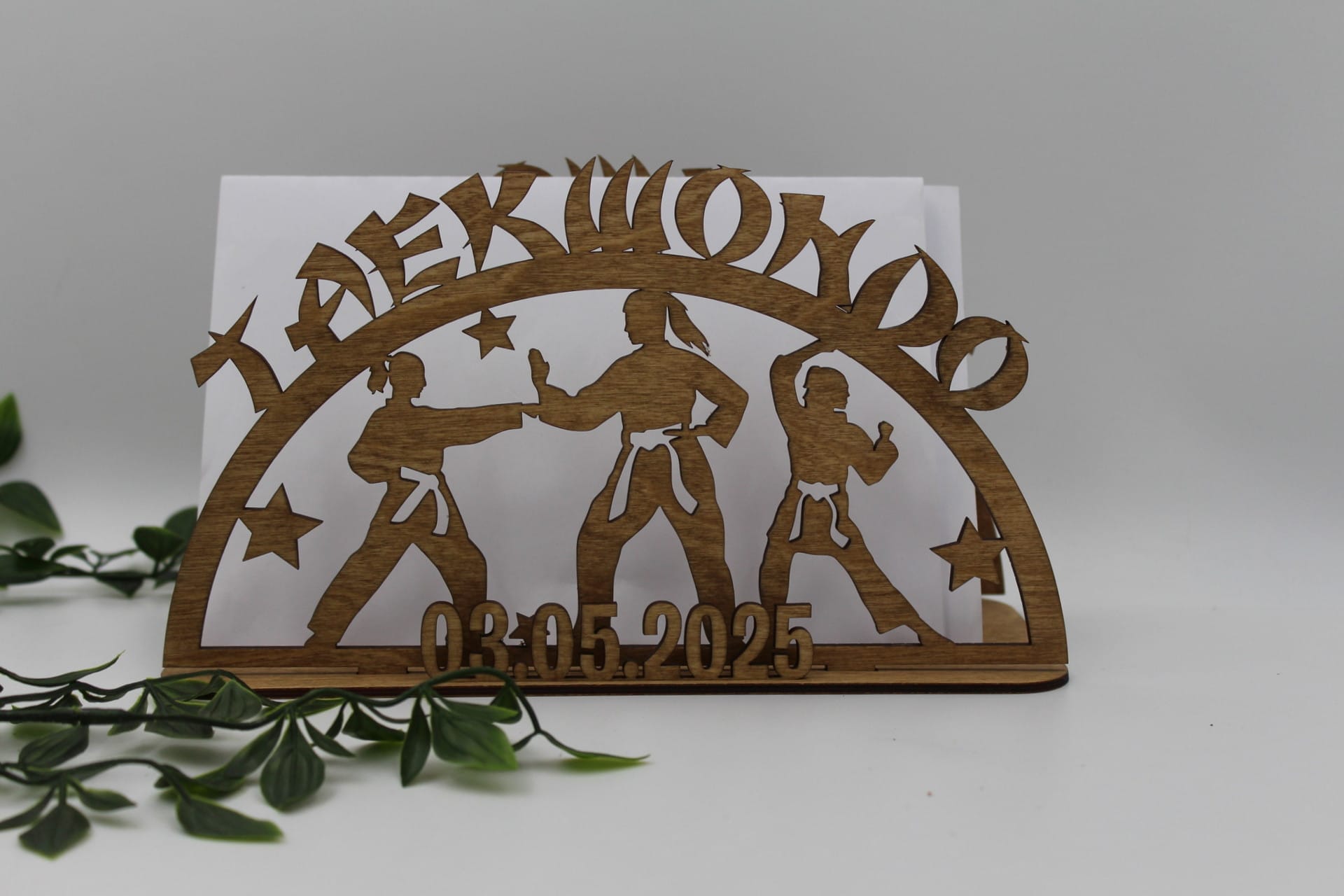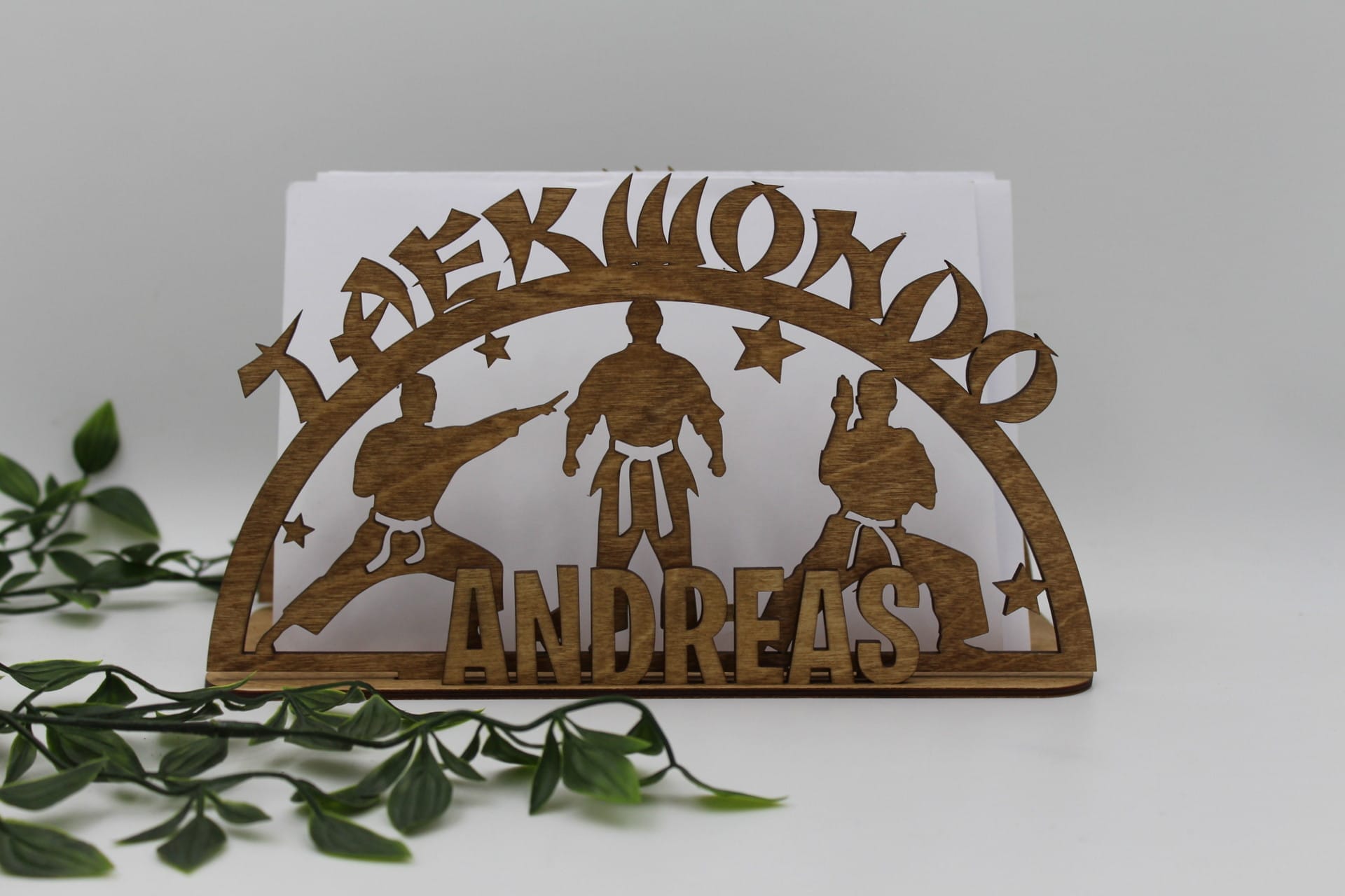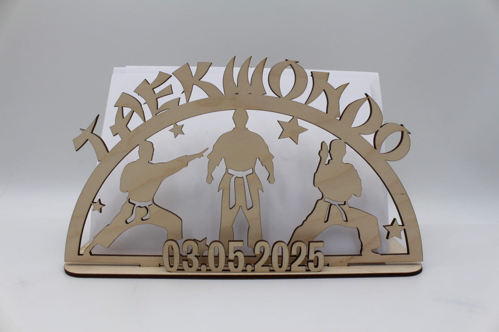 Unik Sangskjuler i Træ med Taekwondo Motiv