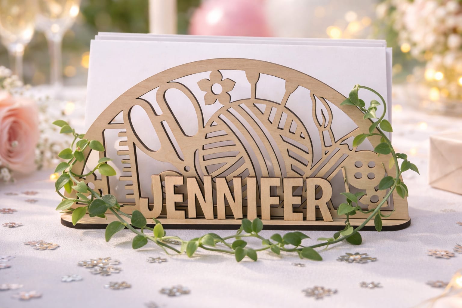 Når festen er slut, lever minderne videre. Denne sangskjuler i træ kan efterfølgende stå på værelset som en personlig dekoration og et smukt minde om en dag fyldt med familie, latter og kærlige ord.