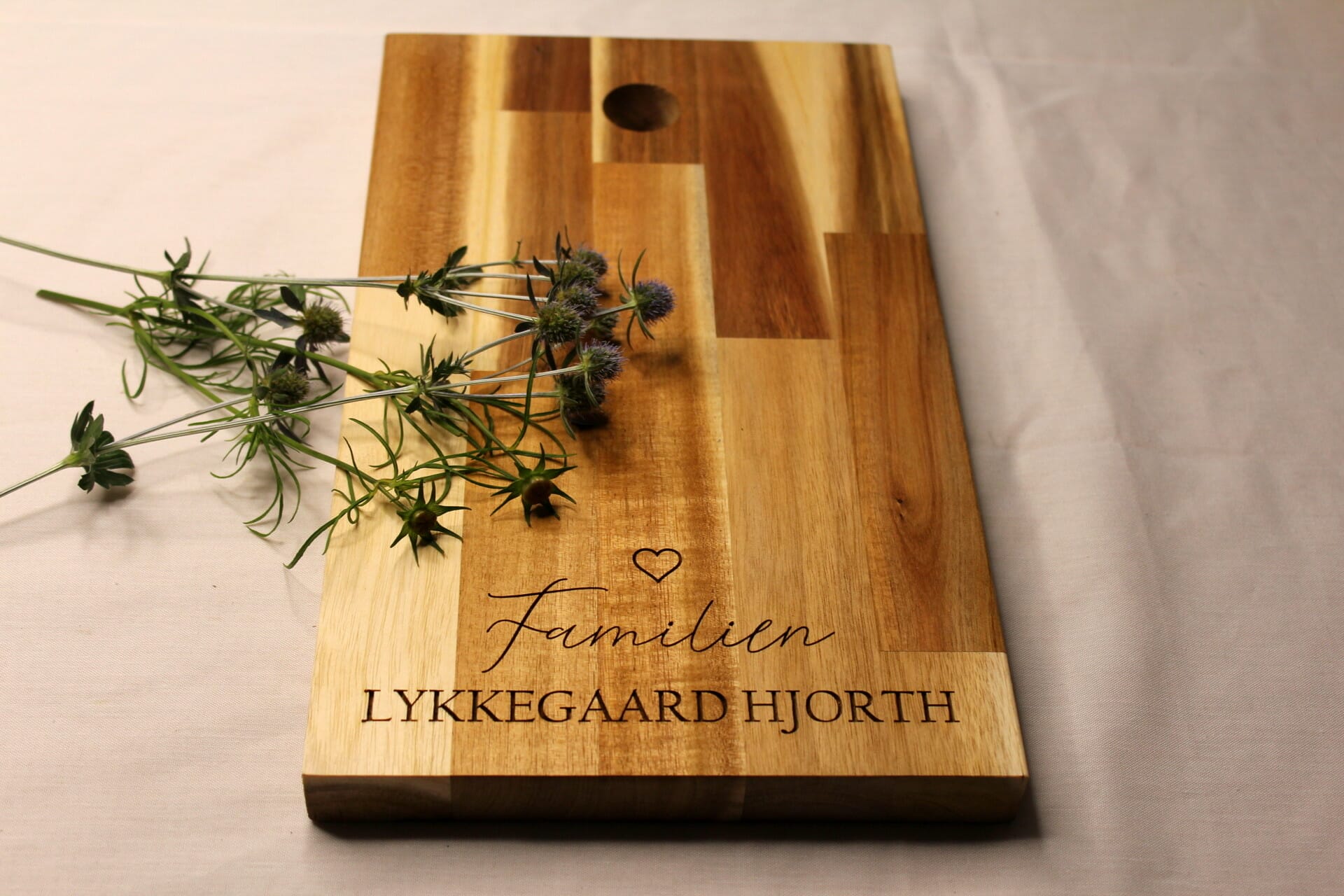 Vores skærebræt med familienavn og indgraveret hjerte er ikke kun en genstand; det er en måde at skabe minder om smagfulde øjeblikke i køkkenet. Giv det som en gave eller forkæl dig selv med dette unikke og personlige skærebræt.