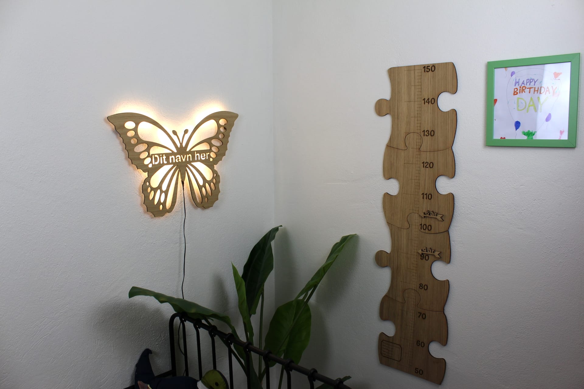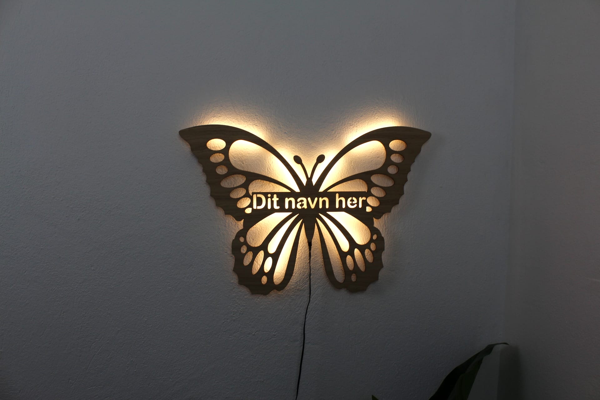 Sød lampe med med motiv af en fin lille sommerfugl inklusiv navn lavet i egefiner.