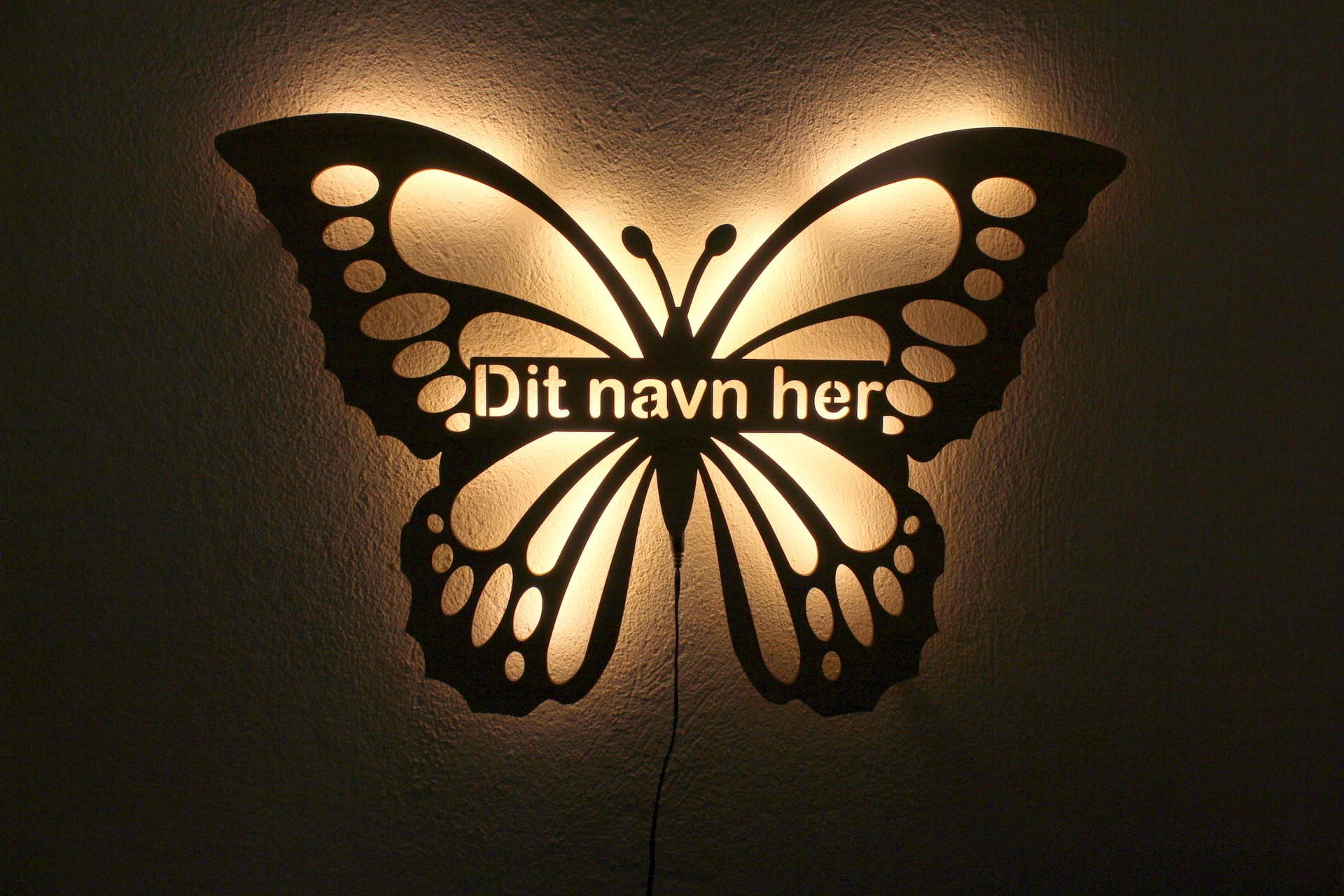 Skriv navn eller tekst i tekstfeltet, så laver vi en flot lampe til dig.
