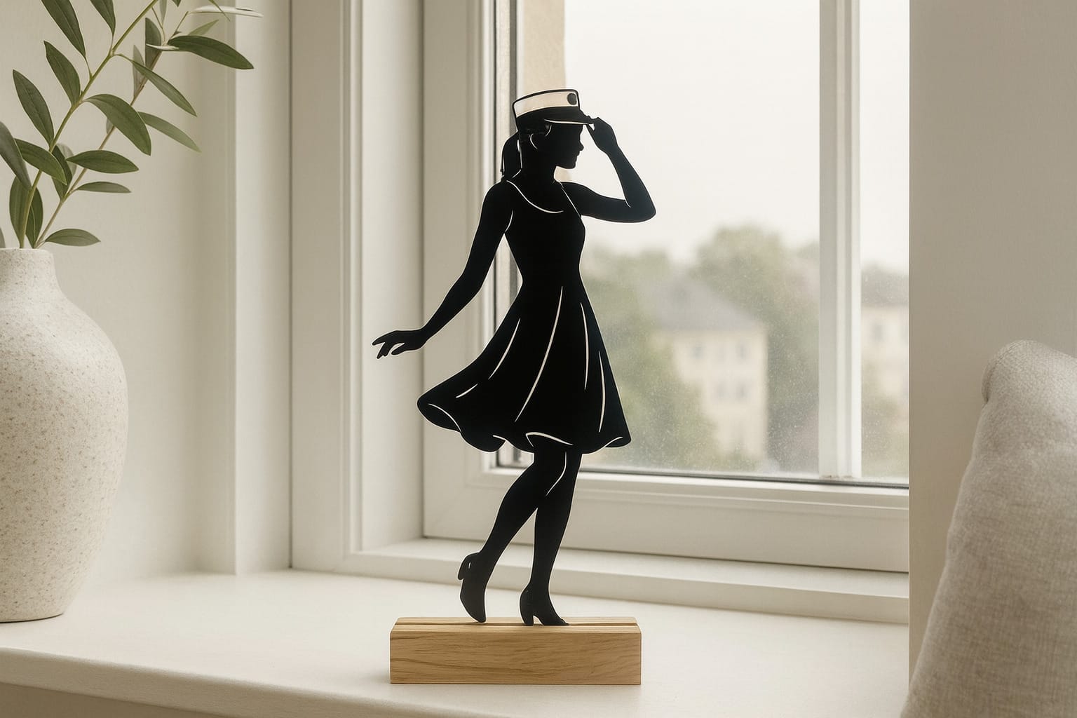 Denne moderne kunst er skabt med tanke på nordisk æstetik – rene linjer, naturlige materialer og en tidløs ro. Figuren passer perfekt ind i de fleste hjem og kan pryde alt fra vindueskarmen til reolen i stuen. Den fungerer som et moderne og stilrent indslag i interiør kunst, der både vækker glæde og minder om en særlig dag.
