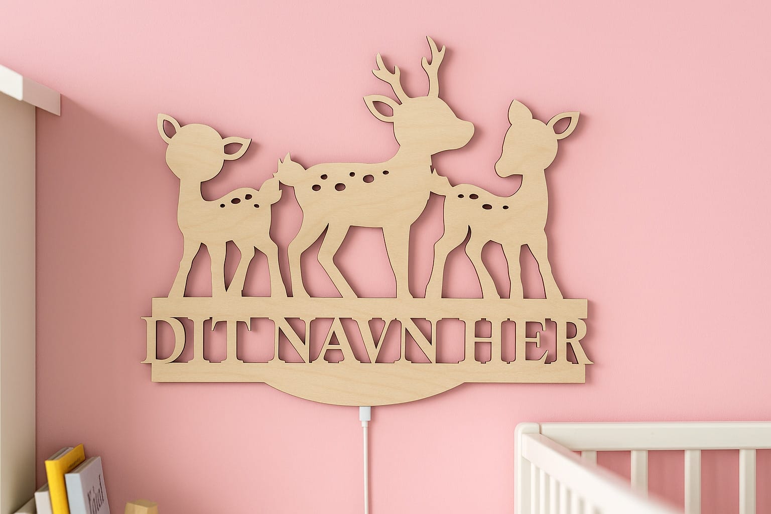 Personlig væglampe med søde bambier – en hyggelig lampe med navn til børneværelset