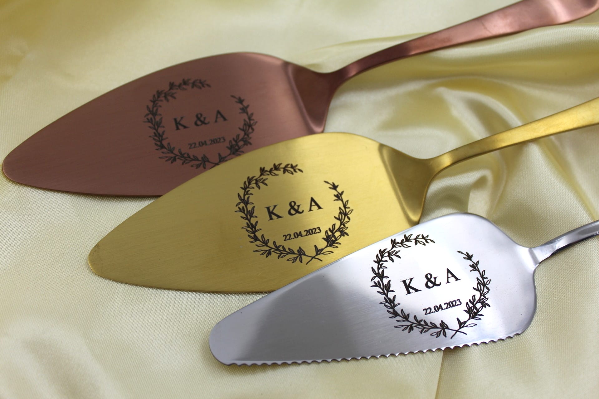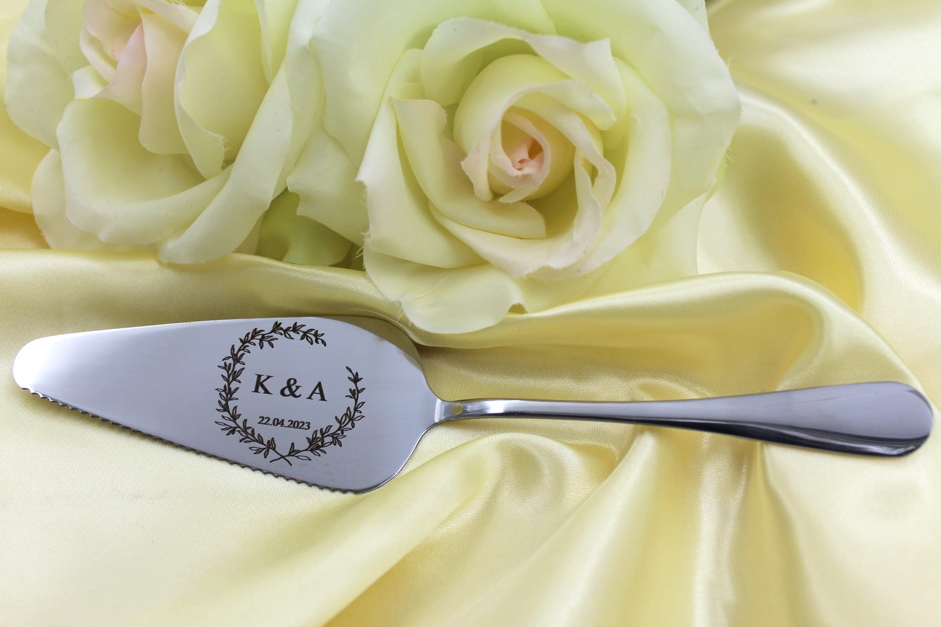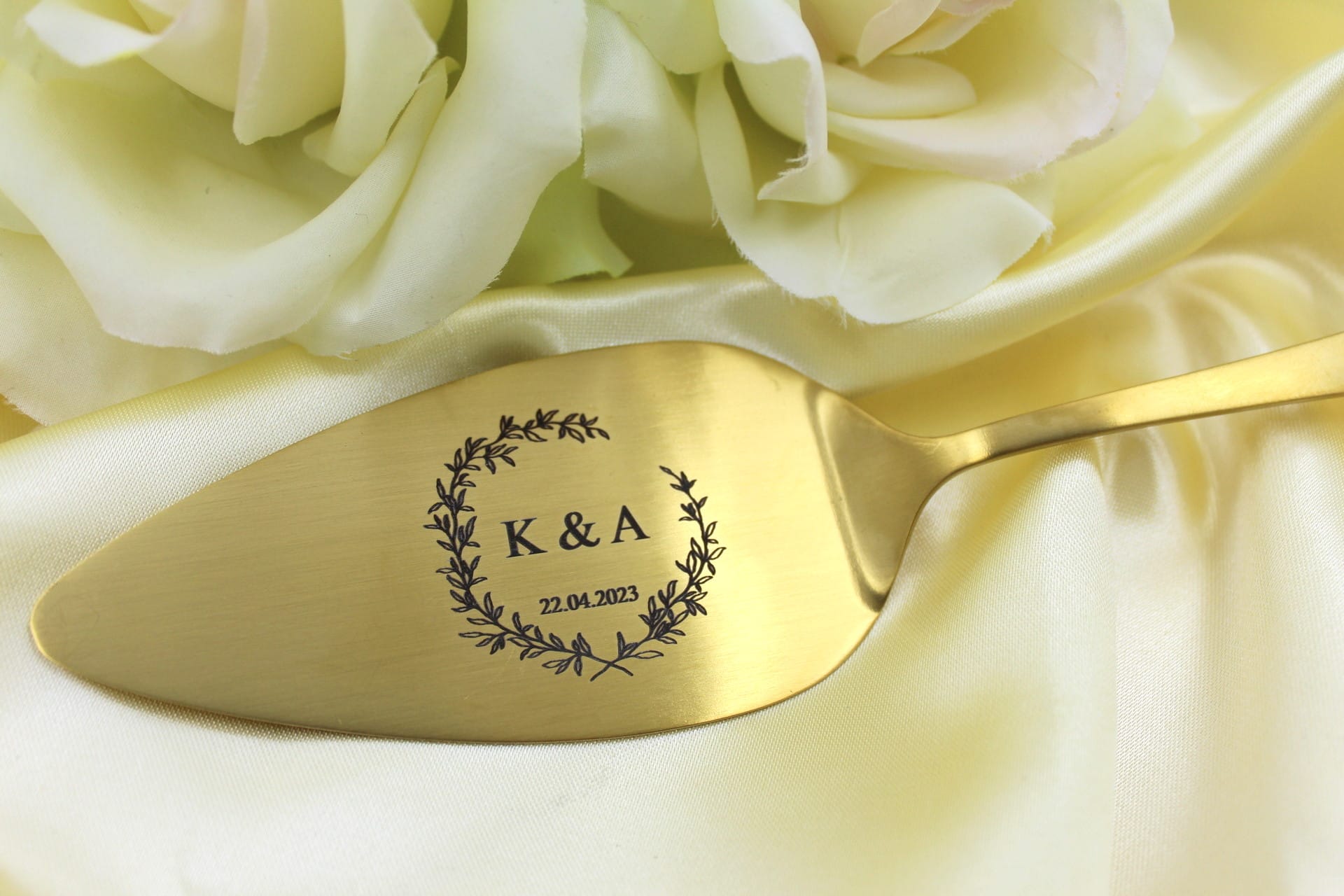 Giv Jeres kageoplevelse en personlig touch ved at tilføje datoen for Jeres begivenhed. Dette ekstra element gør kagespaden til et tidløst minde om Jeres kærlighedsfortælling, et smykke, der bringer Jer tilbage til det magiske øjeblik, hvor I sagde “ja” til hinanden.