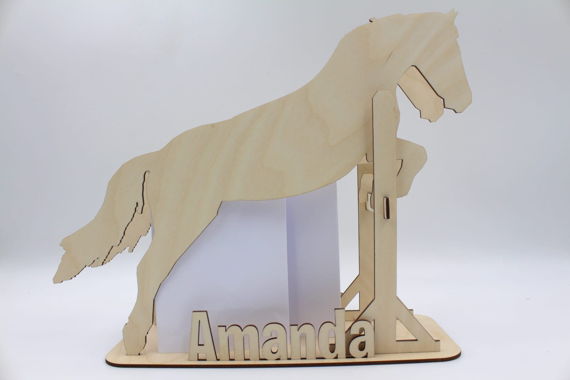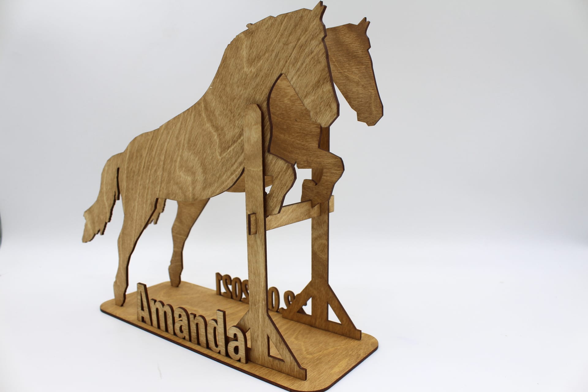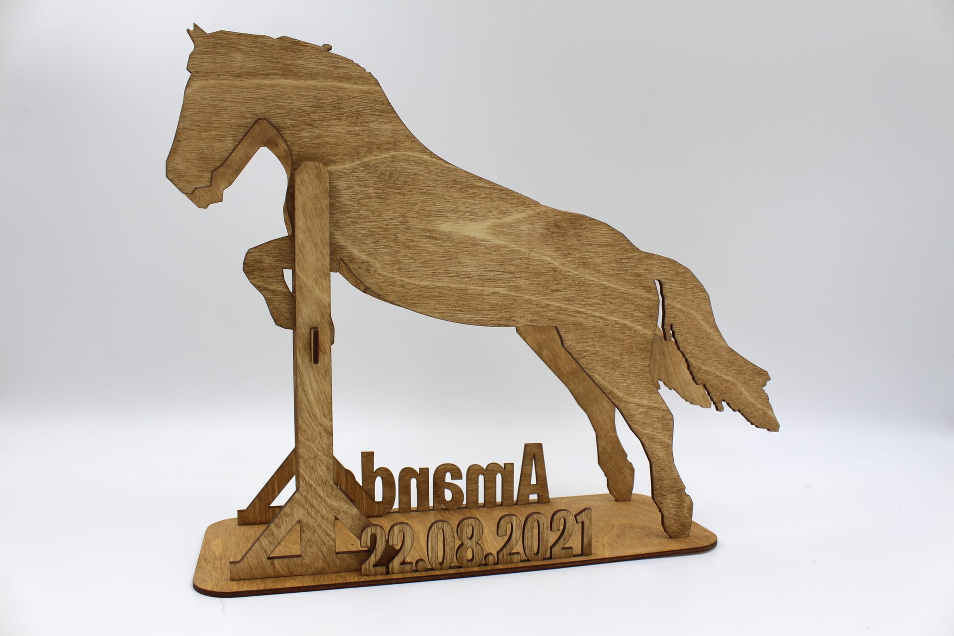 Vores sangskjuler i træ med motiv af en springhest vil ikke kun pynte flot på bordet, men det kan også pynte på værelset. Det er et smukt stykke håndværk, der kan udstilles som en dekorativ genstand, der vil minde dig om din særlige begivenhed i mange år frem.