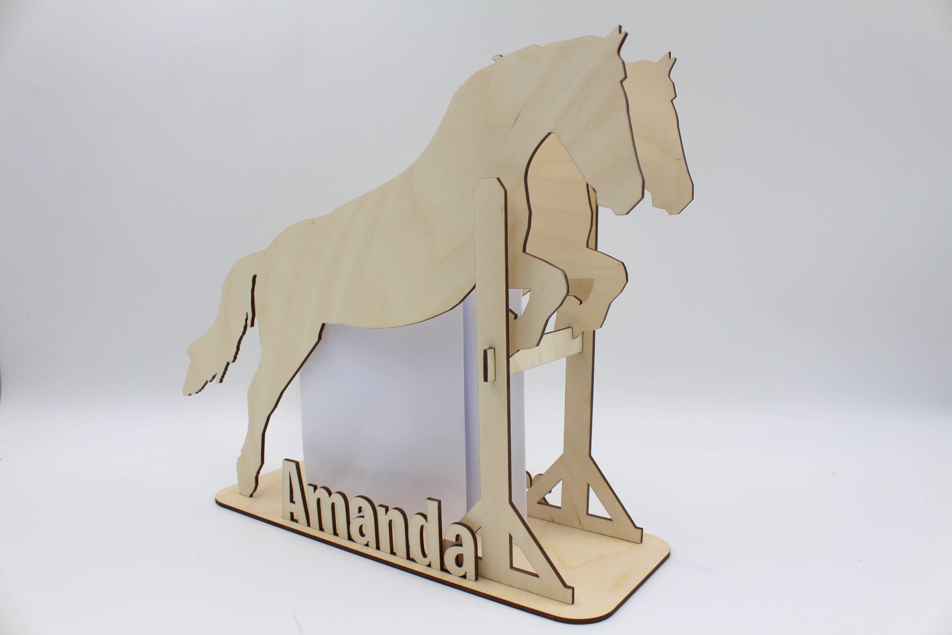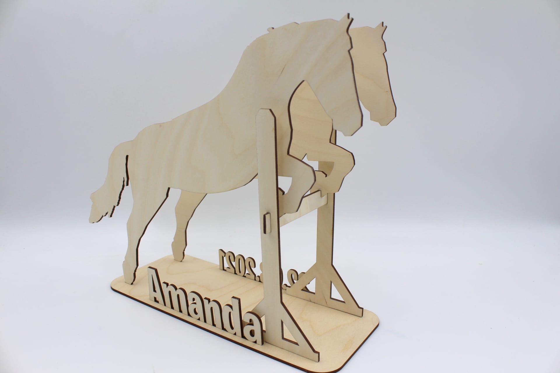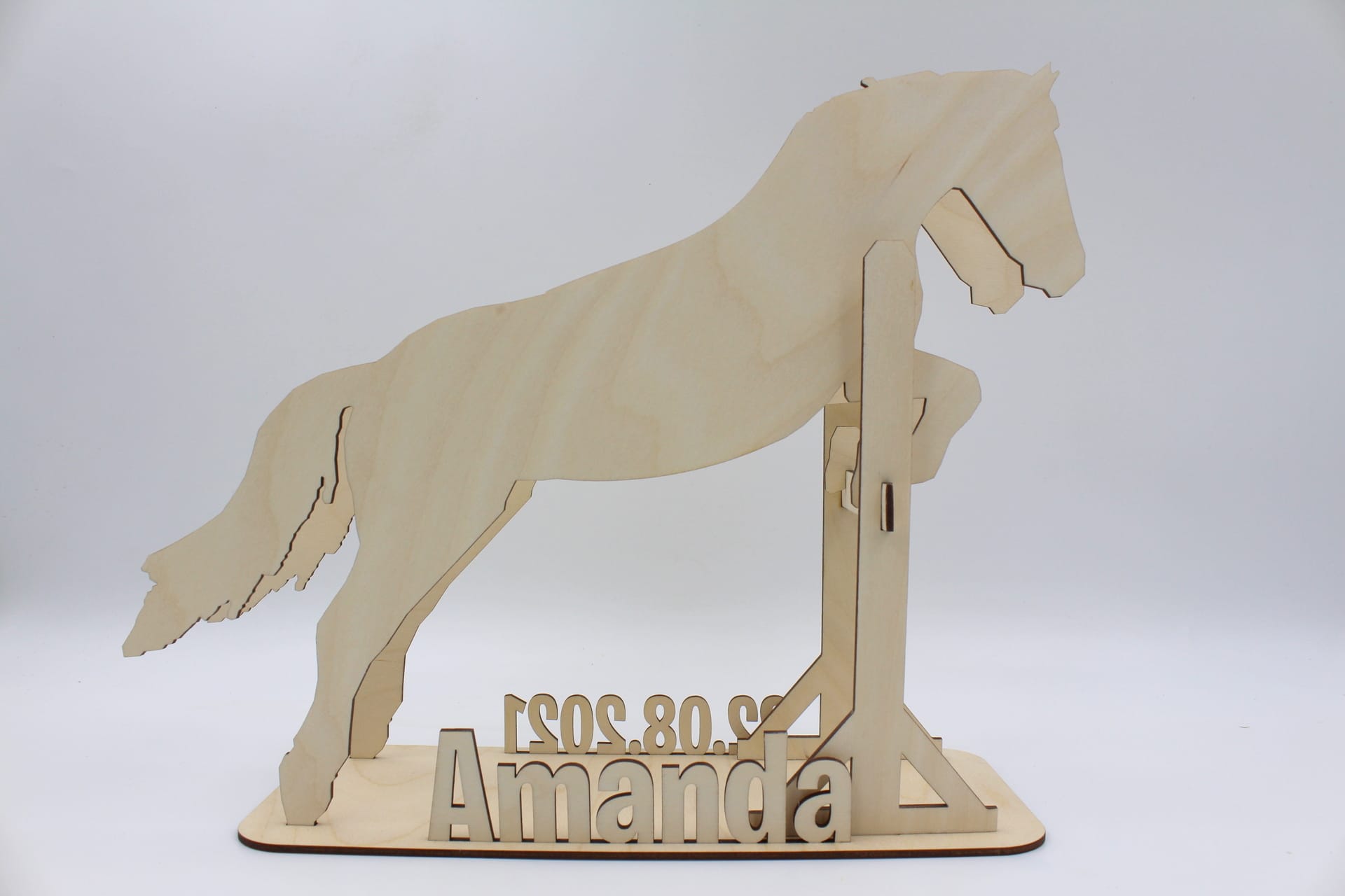 Vores sangskjuler i træ med motiv af en springhest vil ikke kun pynte flot på bordet, men det kan også pynte på værelset. Det er et smukt stykke håndværk, der kan udstilles som en dekorativ genstand, der vil minde dig om din særlige begivenhed i mange år frem.