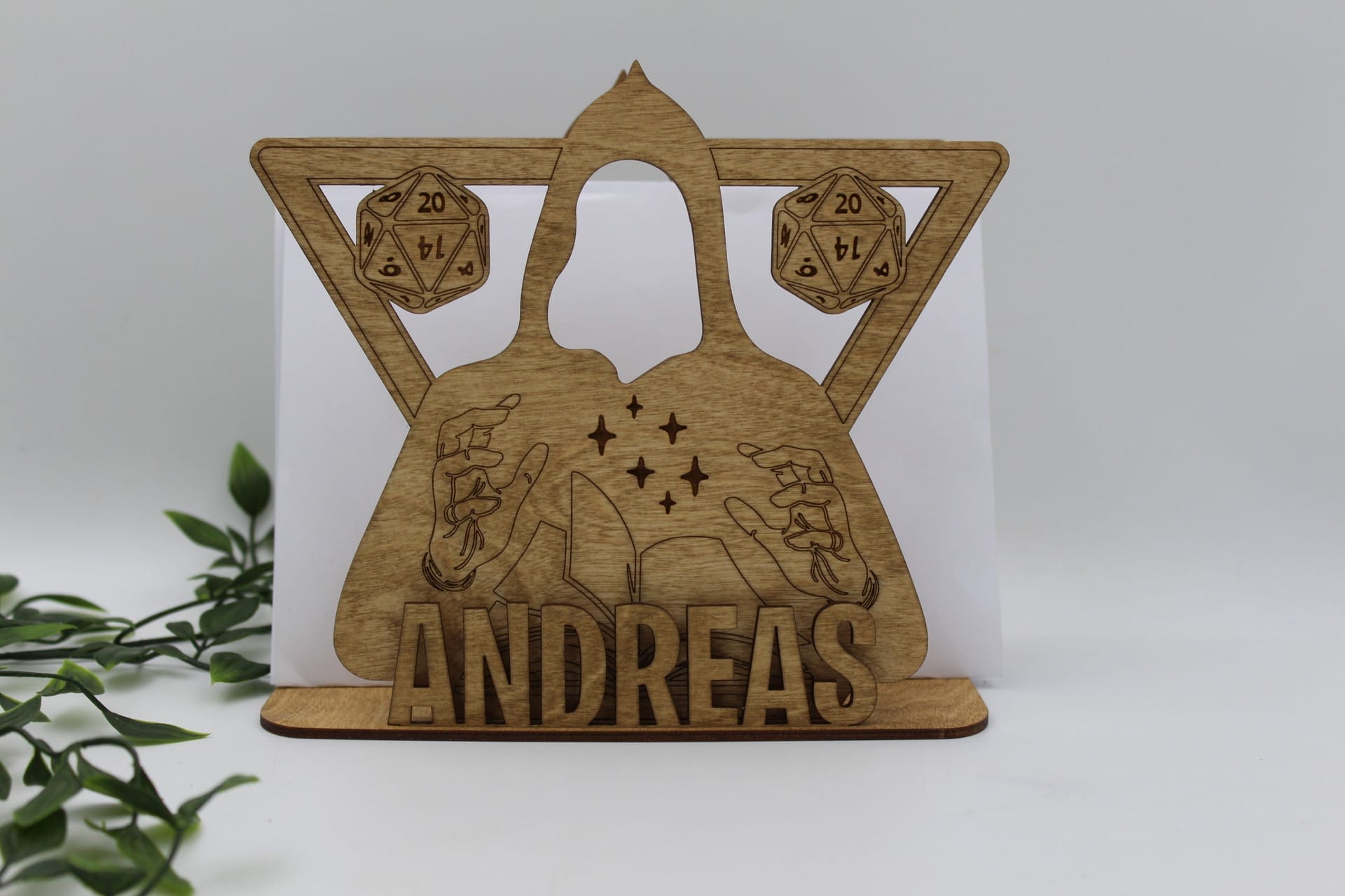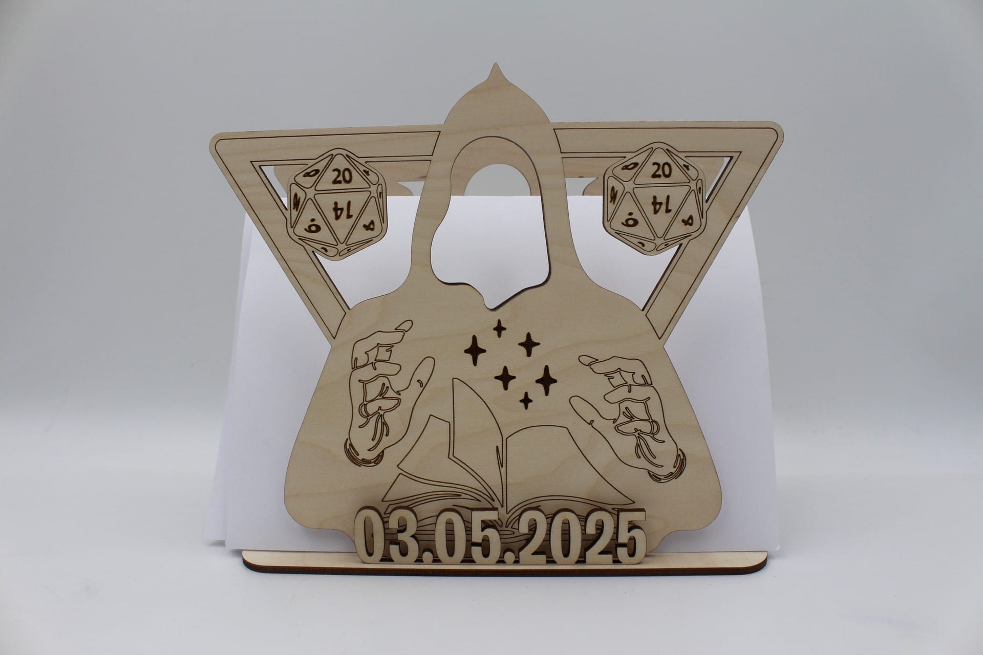 Gør din konfirmationsfest eller specielle begivenhed ekstra mindeværdig med denne unikke sangskjuler i træ! Designet er inspireret af rollespil og live rollsespil, hvilket gør den perfekt til eventyrlystne sjæle. Sangskjuleren er præcisionsudskåret og har et smukt 3D-look, der giver bordpynten et unikt præg.