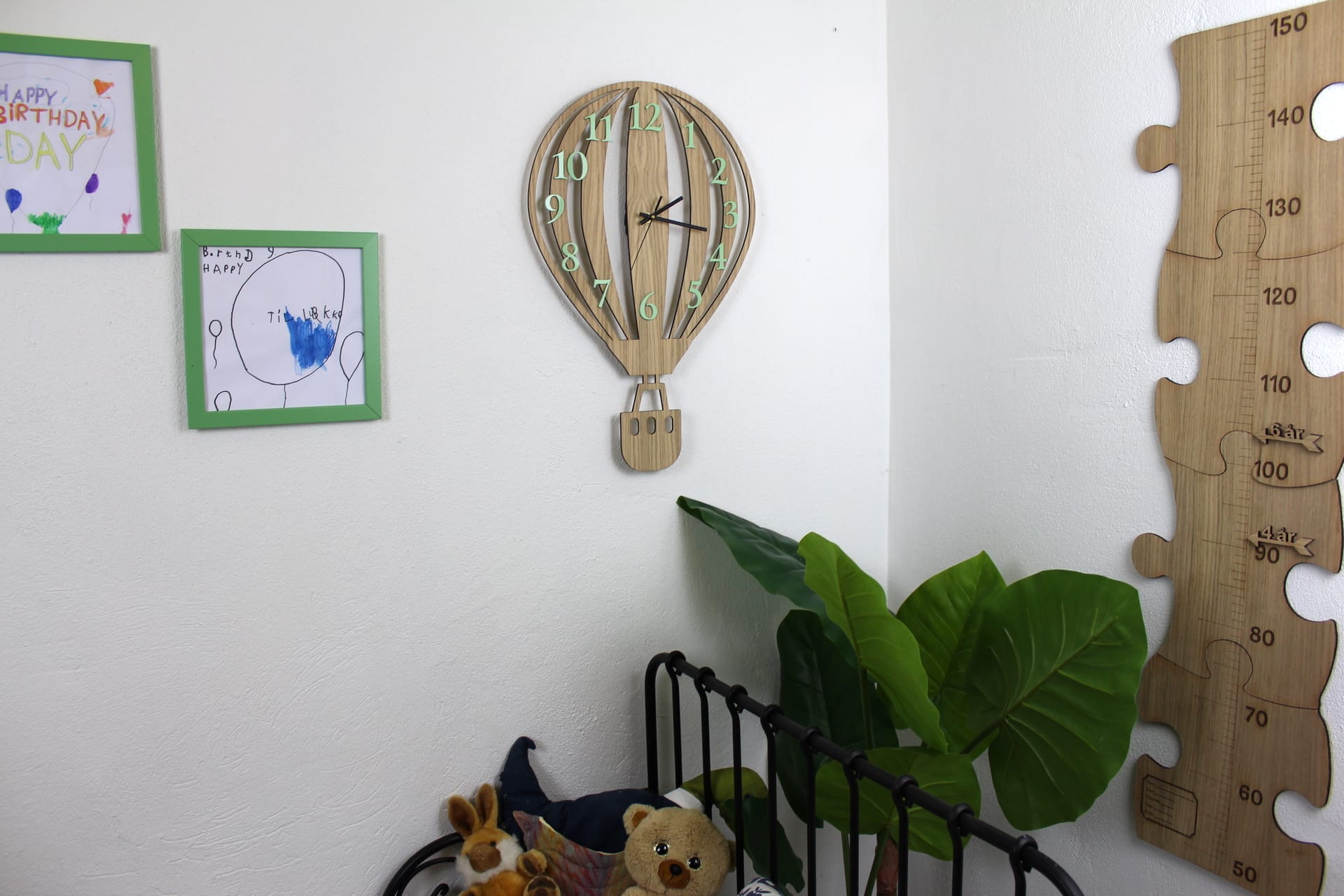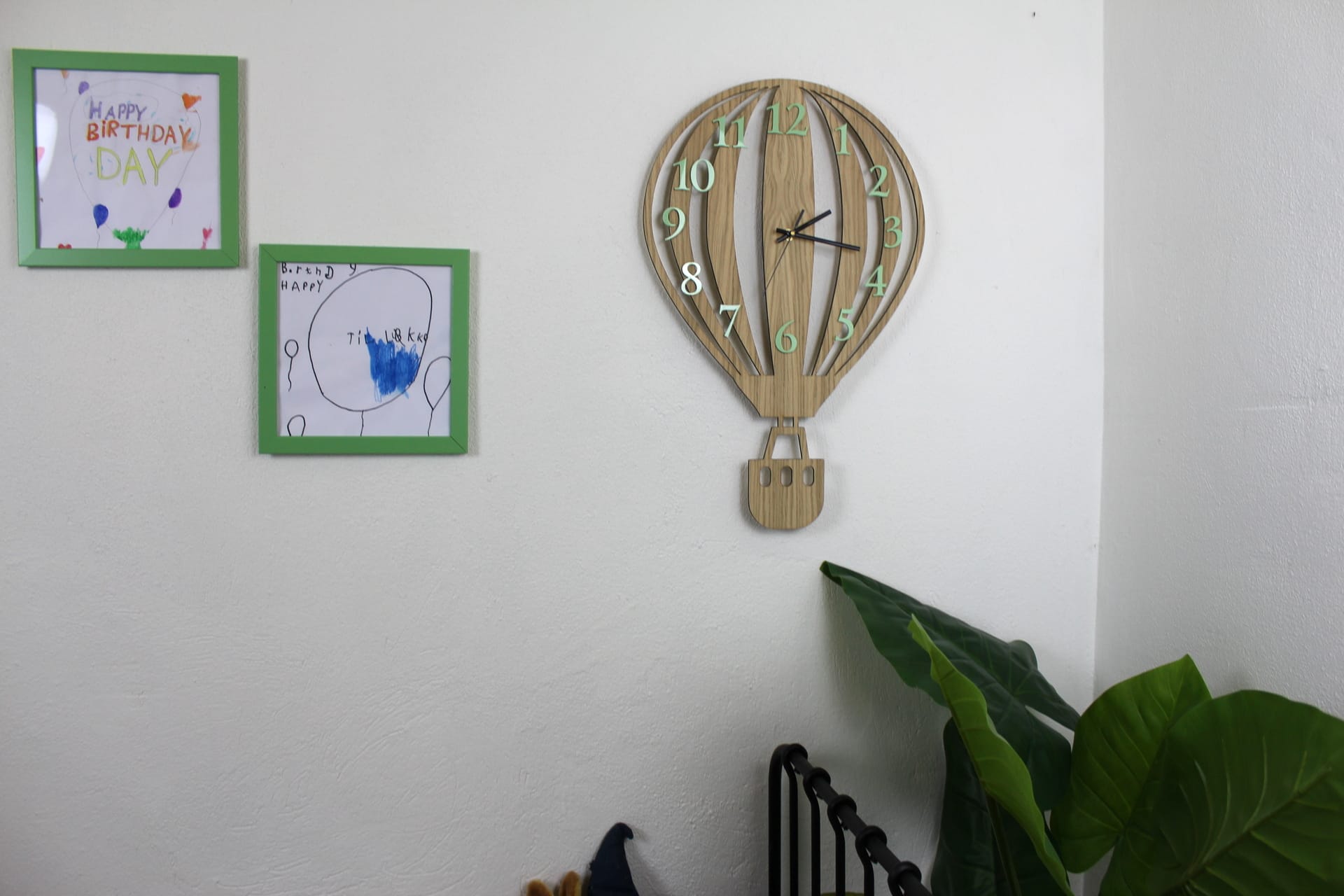 Uret er lavet af egefiner og bruger et enkelt AA batteri.